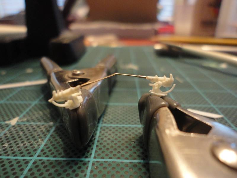 With the ribs drying I started on the two 40mm Single Barrel Bofors.