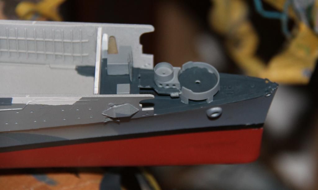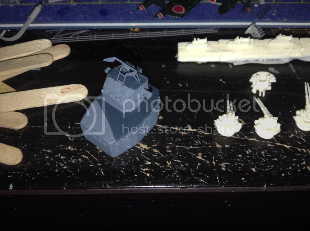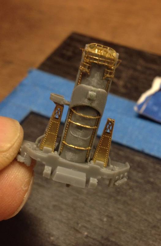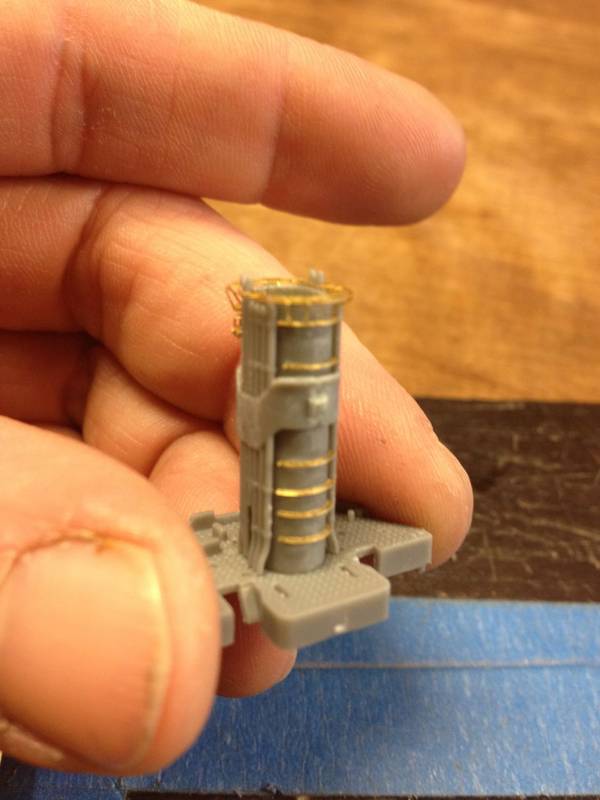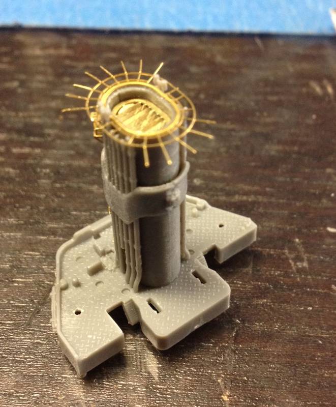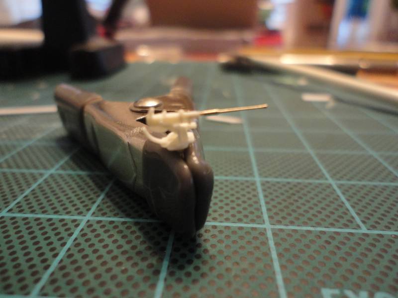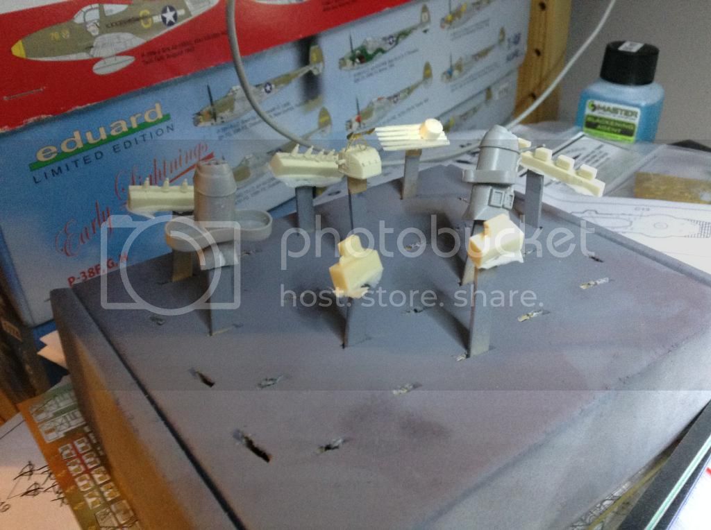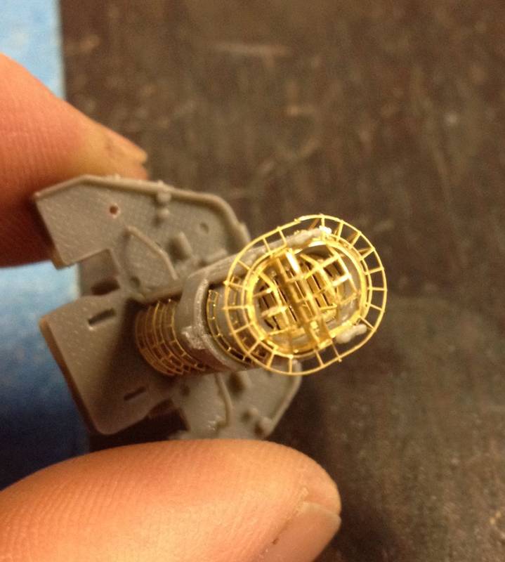 Sorry for the blurry picture but you get the idea. I used the Master Model 40mm Air Cool Barrels. Very challenging drilling the hole to mount the barrels. I see a little gap in the picture. Hopefully the paint will make that disappear or some white glue.