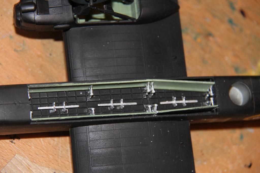 I have used the kit bomb carriers, they are a bit small, but will be invisible under the mines, they did need a slot cutting in their mountings so they would fit on the bomb bay centre line.