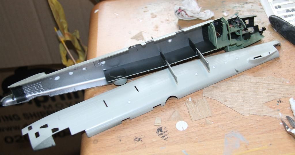 A bit of a departure from the normal construction, the undercarriage bays, and wings. these can then be sprayed at the same time as the relevant bits of the cockpit.