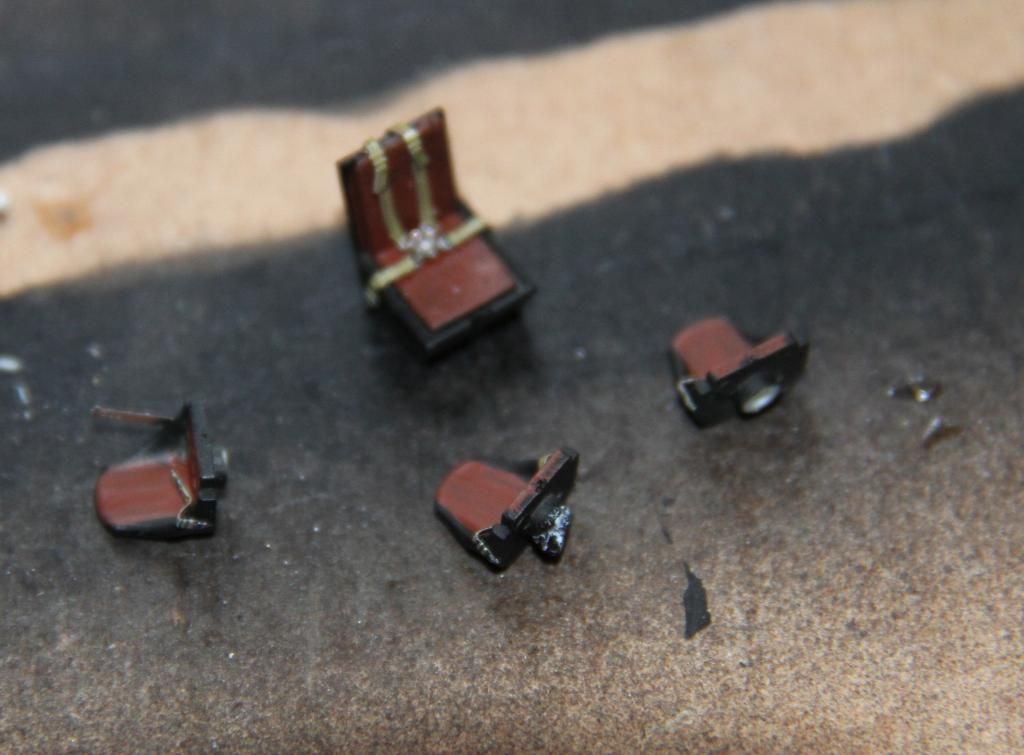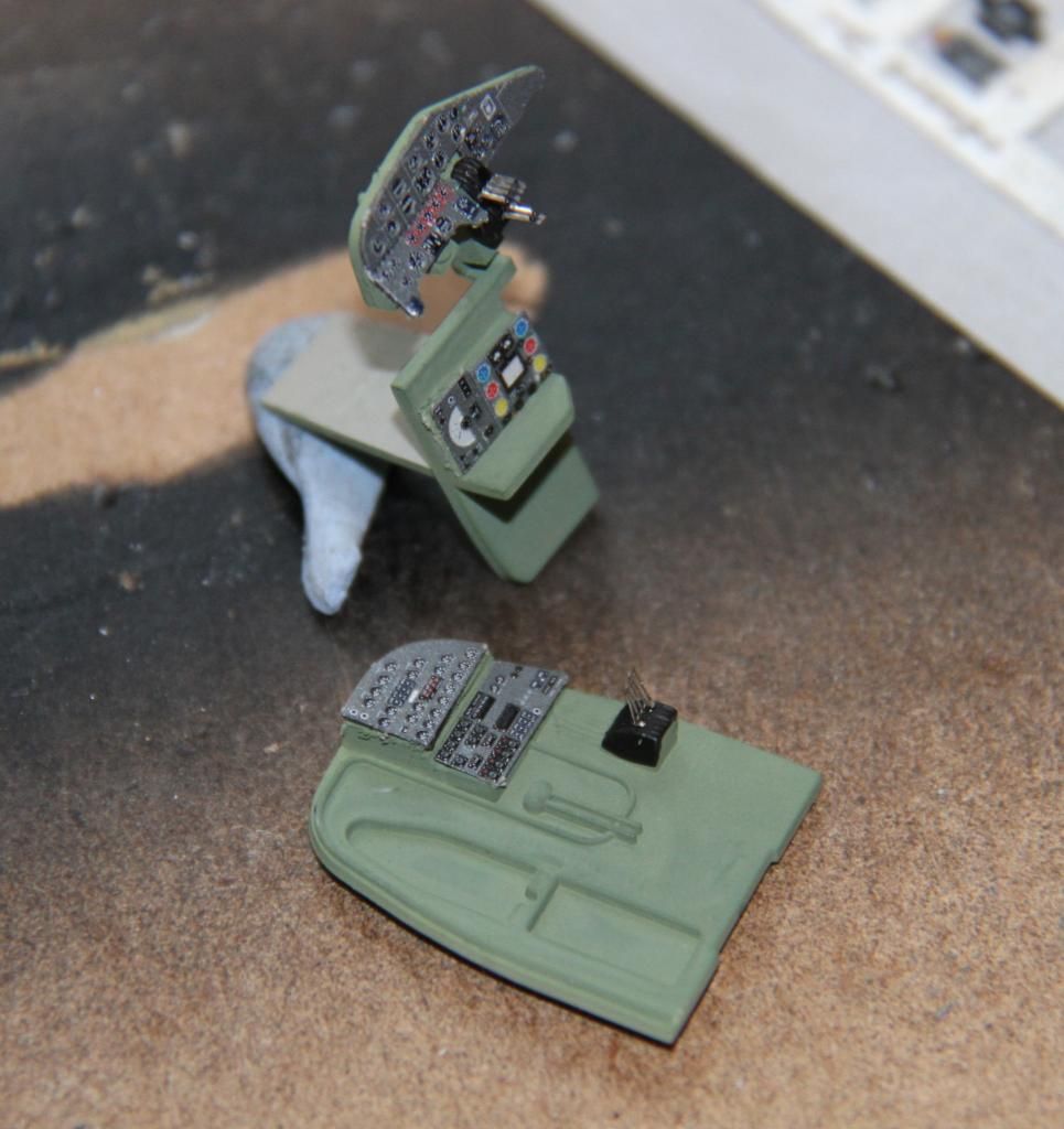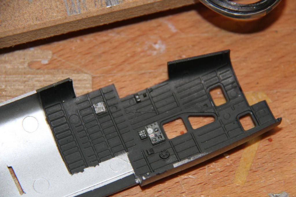 A bit more destruction needed, the moulded on details on the instrument panel, and bulkheads. Before.
