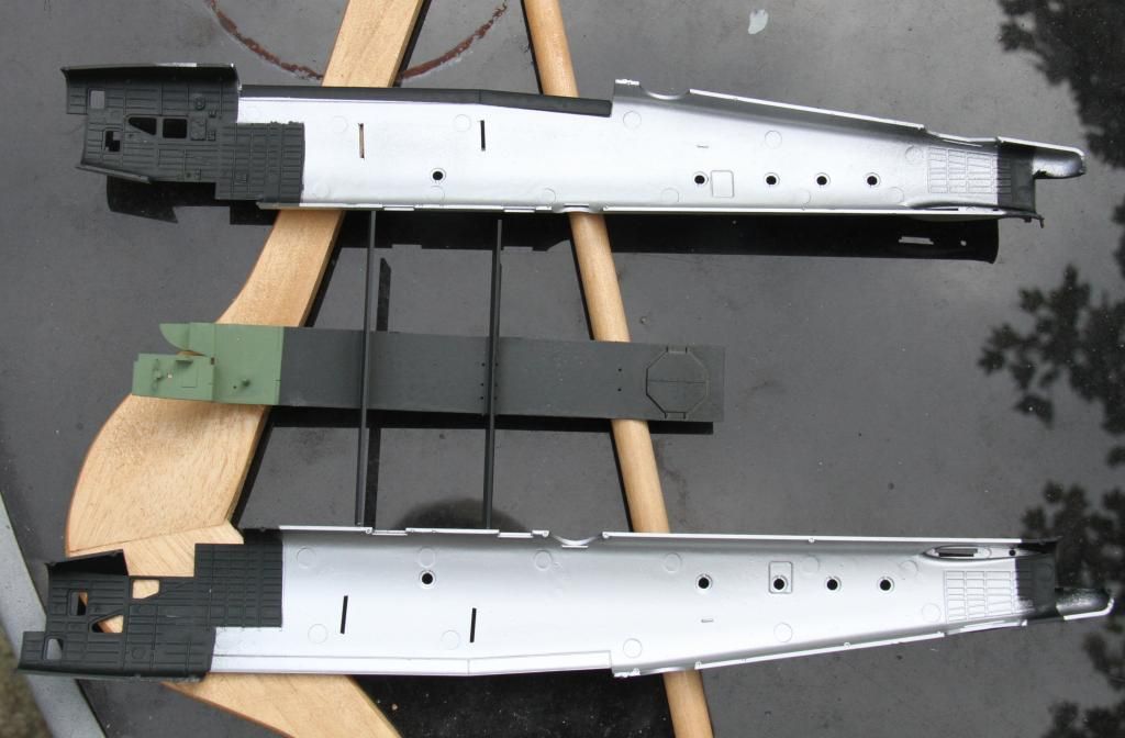 The mid section of the fuselage was unpainted, so sprayed airframe silver, and the floor aft of the cockpit also given a coat of Nato black.