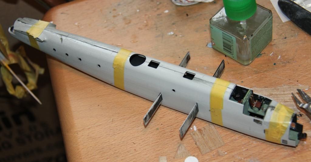Fuselage interior done, the smaller circular window filled with krystal Klear,