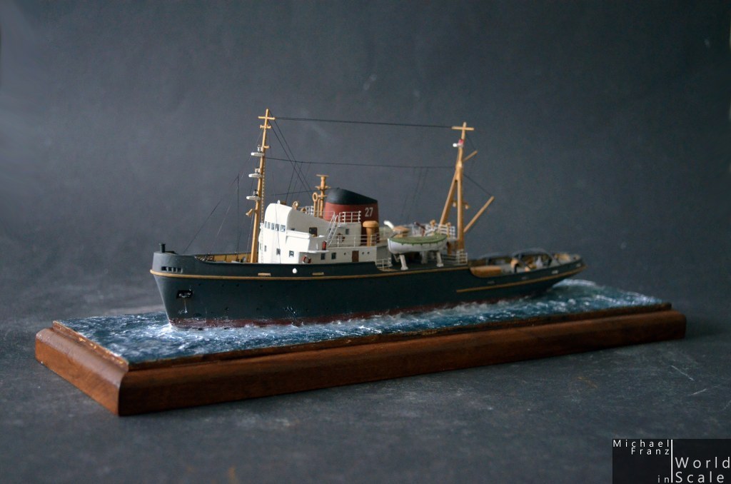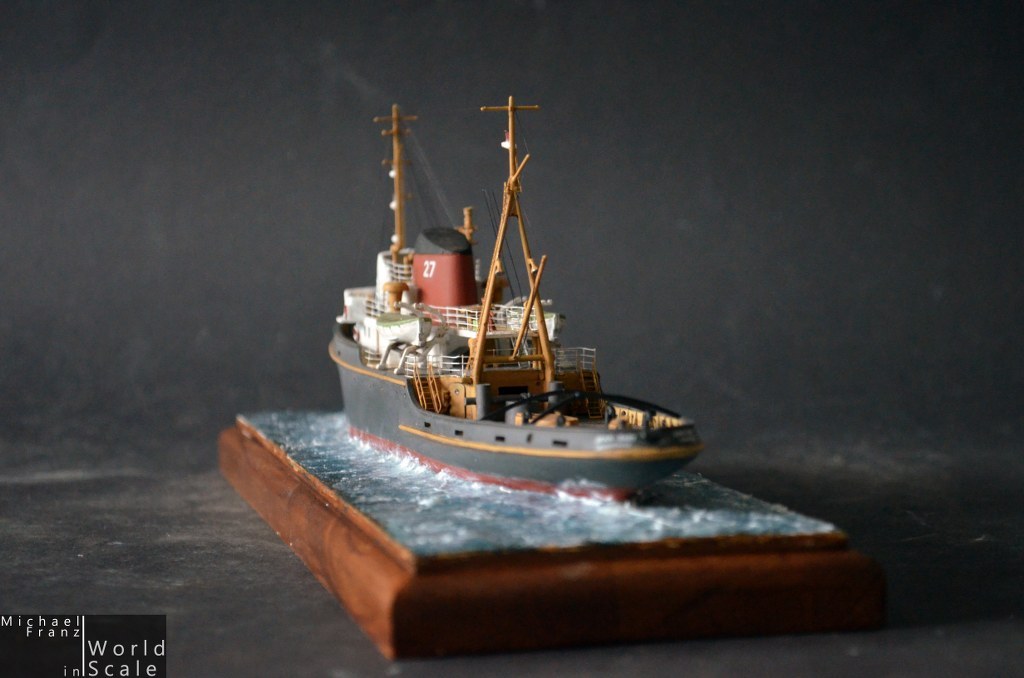 I want to show you my small oceangoing tug boat "JEAN BART" in scale 1/200 by Heller. The kit is a very old one, was on the market several times as "SAMSON" or "JEAN BART" in the past. The details of the kit are ... "older-style"... not so sharp as new kits, not so detailed, some parts a little bit "oversized".... but all in all ... a good looking kit, a wonderful ship and therefore a nice model as base for some modifications. What I have done?