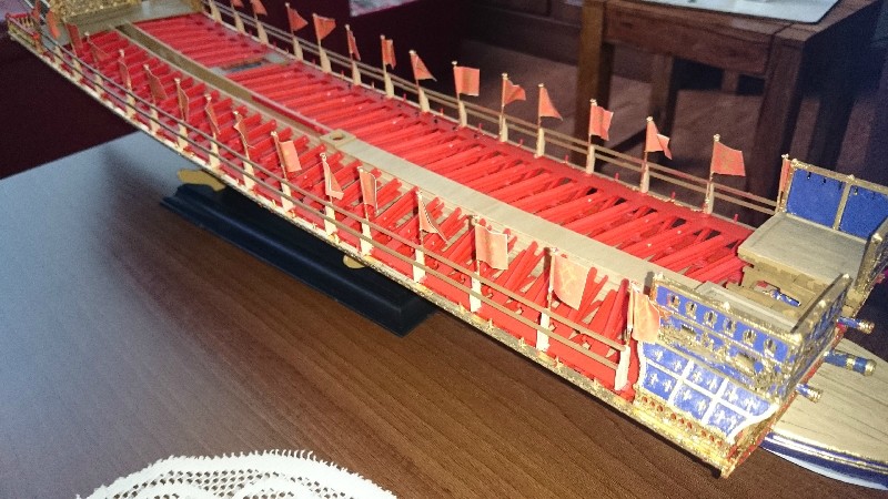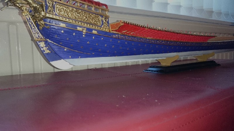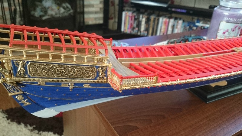 I was wondering what product you're using for your gold leaf. I was contemplating different techniques for the gold portions of a Soleil Royale, and your finish here looks quite good. Are your figures/statues also finished with gold leaf? I was wondering how that worked with a three-dimensional object versus the relief work along the hull and stern.