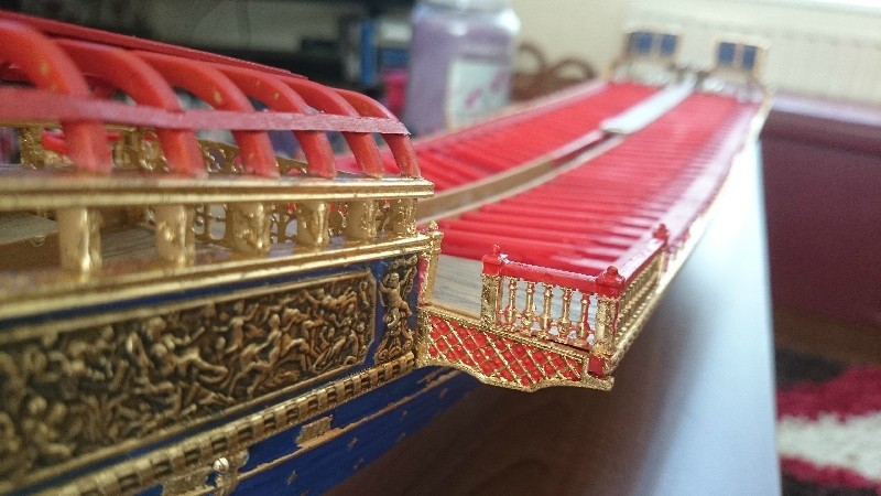 Any panels I would guild the whole panel then paint the base colour over the gold, as I've not found a successful way of removing the little whispy bits left around the edges.your soliel build would look amazing, I was going to get the soliel and do this but the rigging put me off for now, I will see how the rigging goes with this.