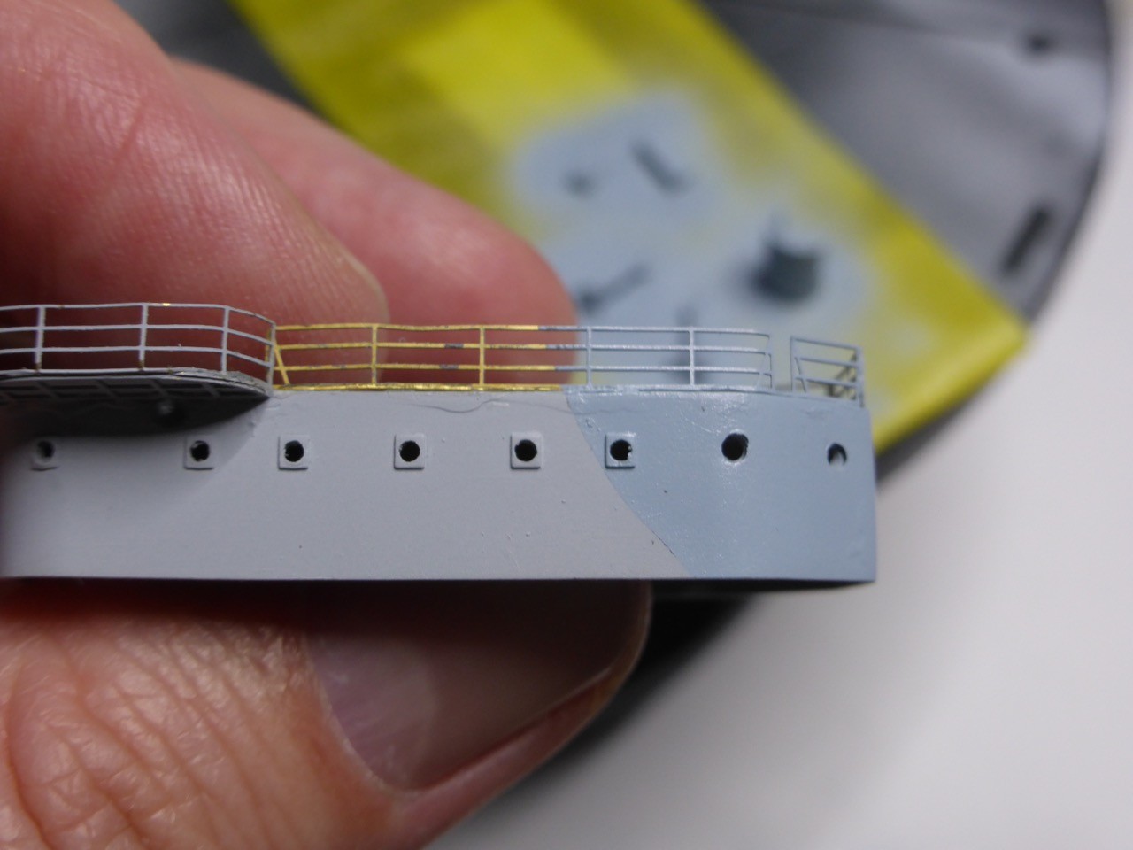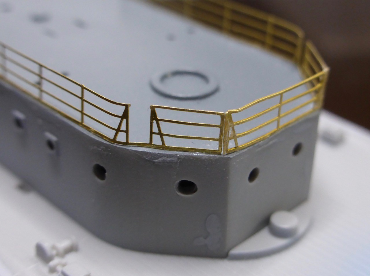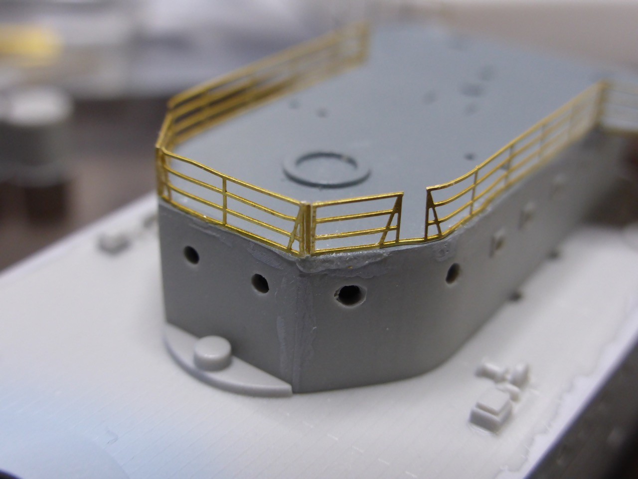 Now I was just about to install all the remaining ladders, the 282 YAGI's, the Oerlikons etc on the bridge when, luckily, a thought stopped me - where do the ladders go to not interfere with the railings?? On that thought, I had a closer look at what railing need to be installed and were, and it was clear that some of the railings need to be installed before all the fragile small stuff is added.