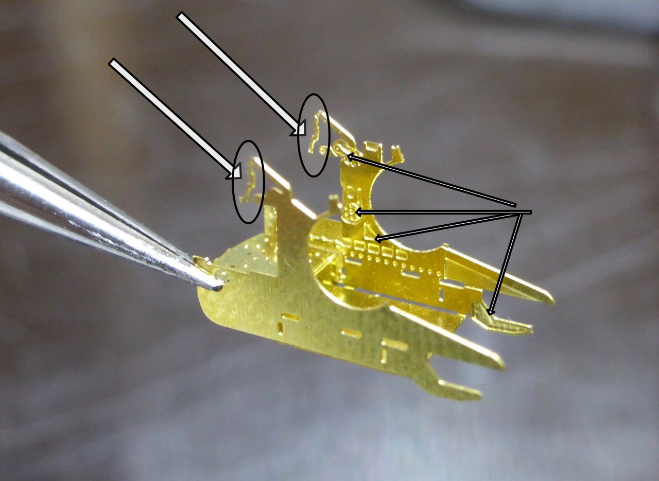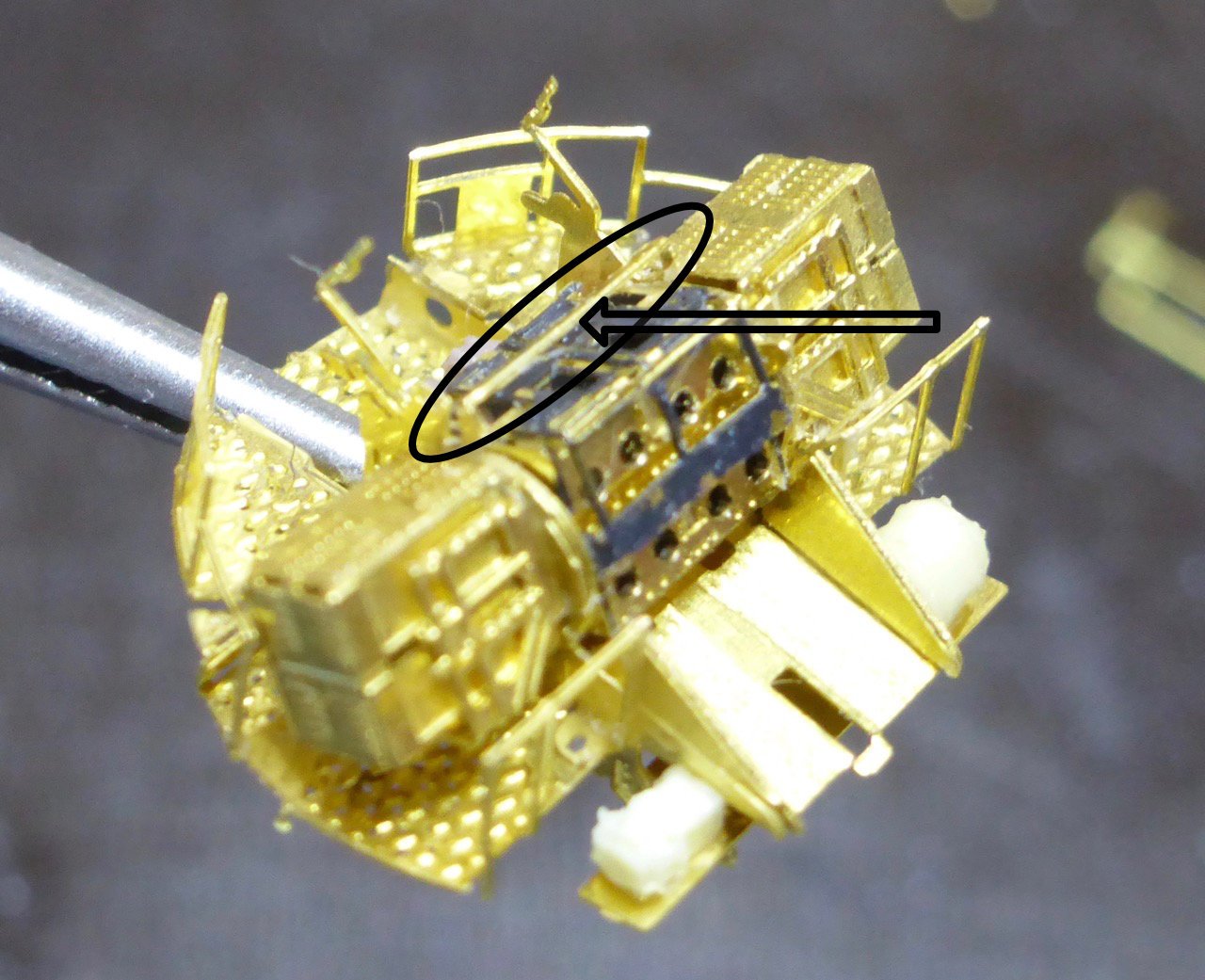 Those little plates will be the joints later on. The little gaps (arrow) find their counterpart on the sides of the breech-block...