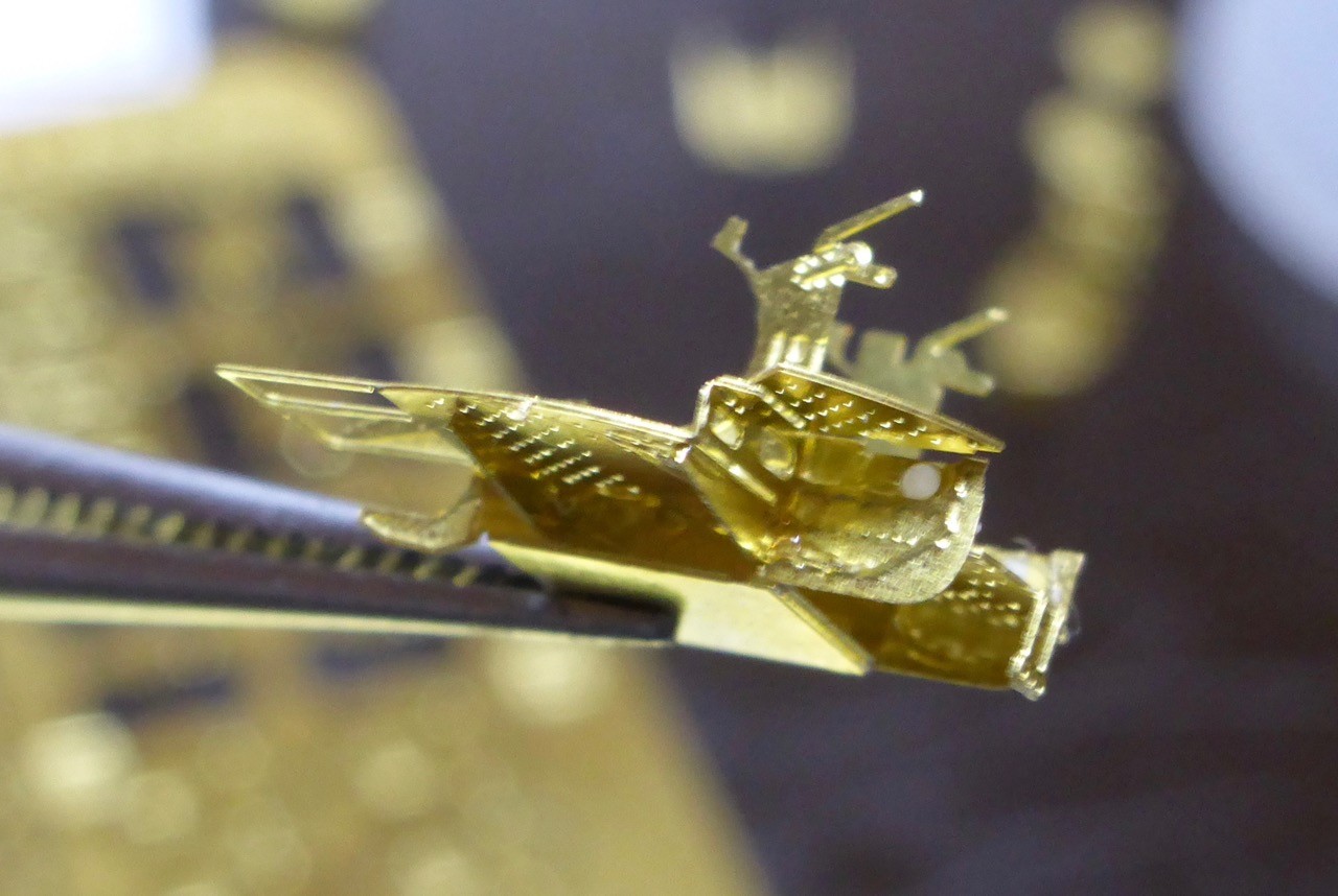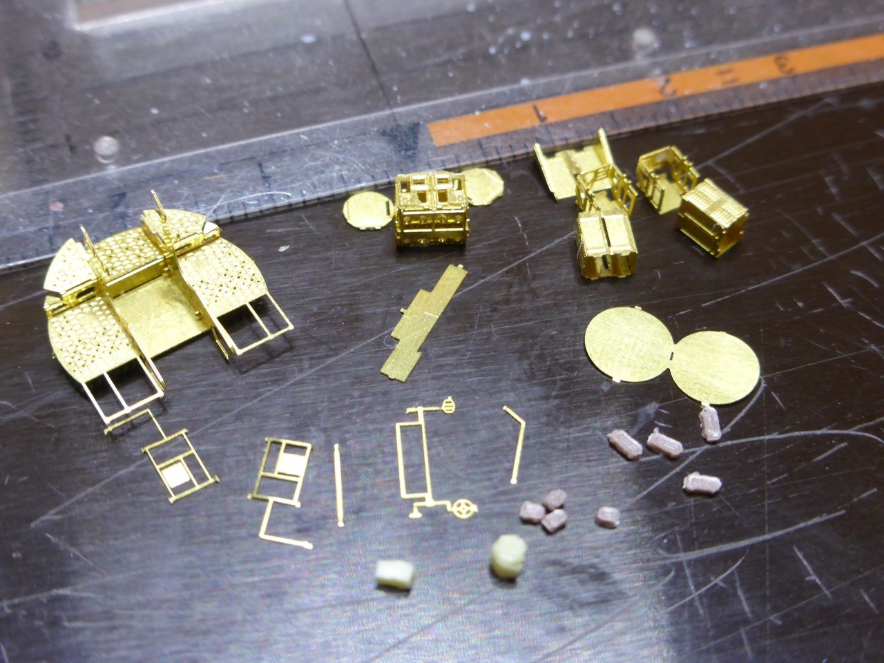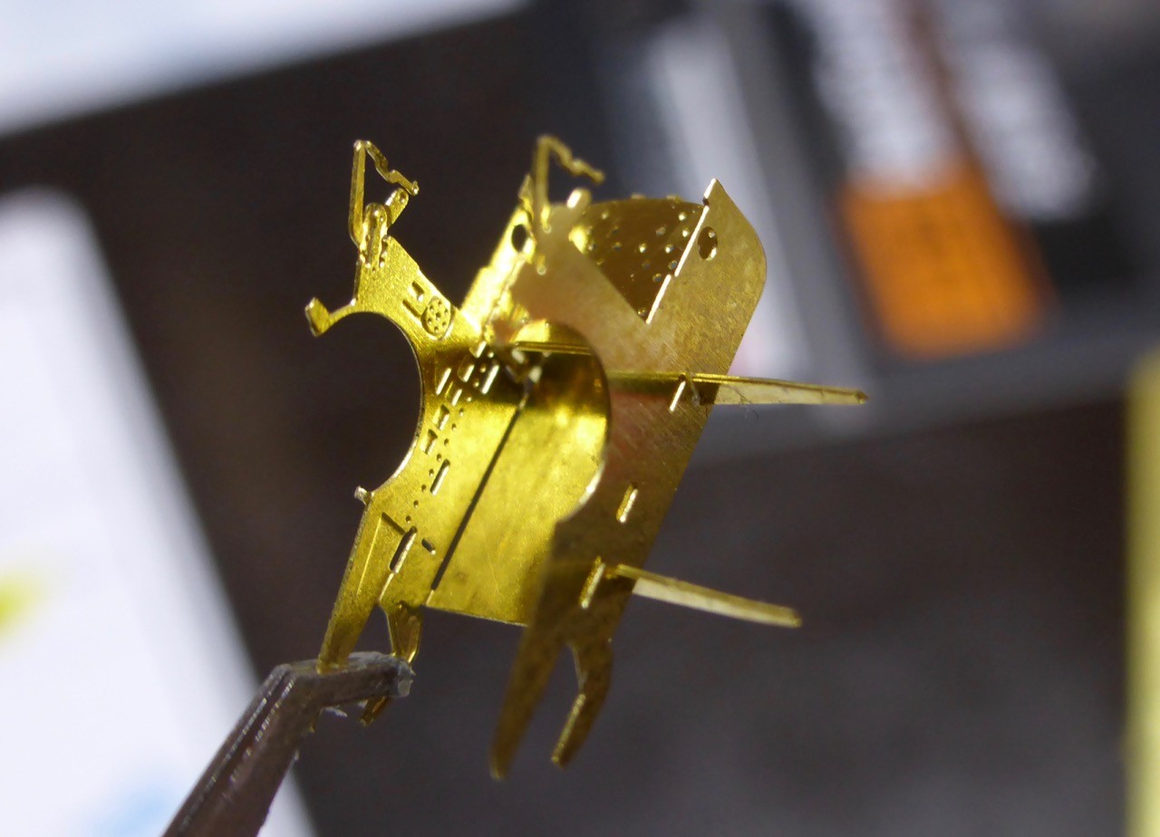 The kit is to build four. Two different length barrels are supplied, and some resin parts and one fret PE. The metal is rather thick and a little bit sturdy, but the etching is really good. So it is quite easy to handle, not really fragile, but this comes with a price: make sure you bend it right the first time. reversing the bend is likely to destroy the part...