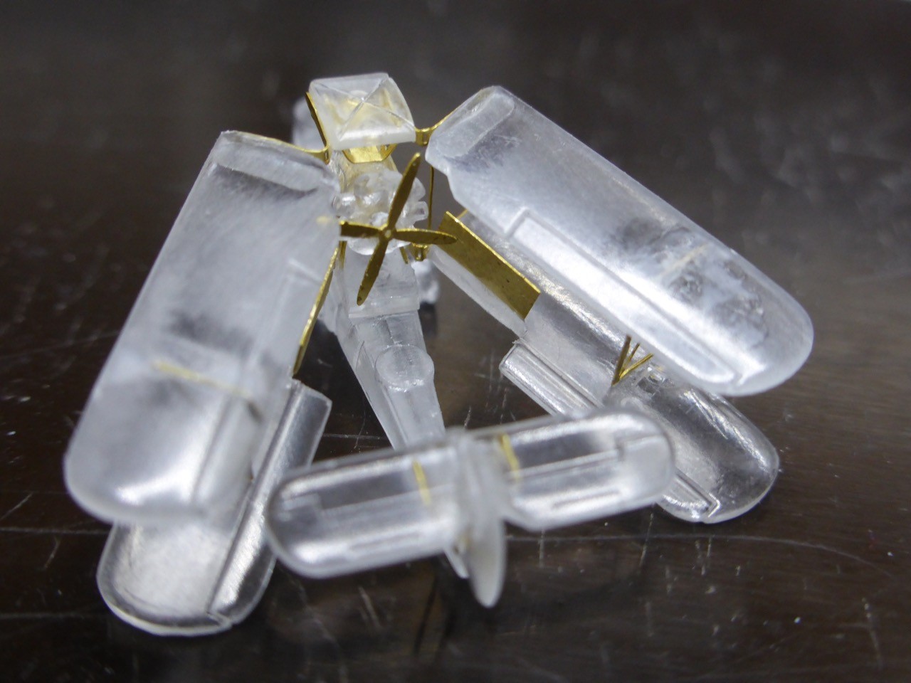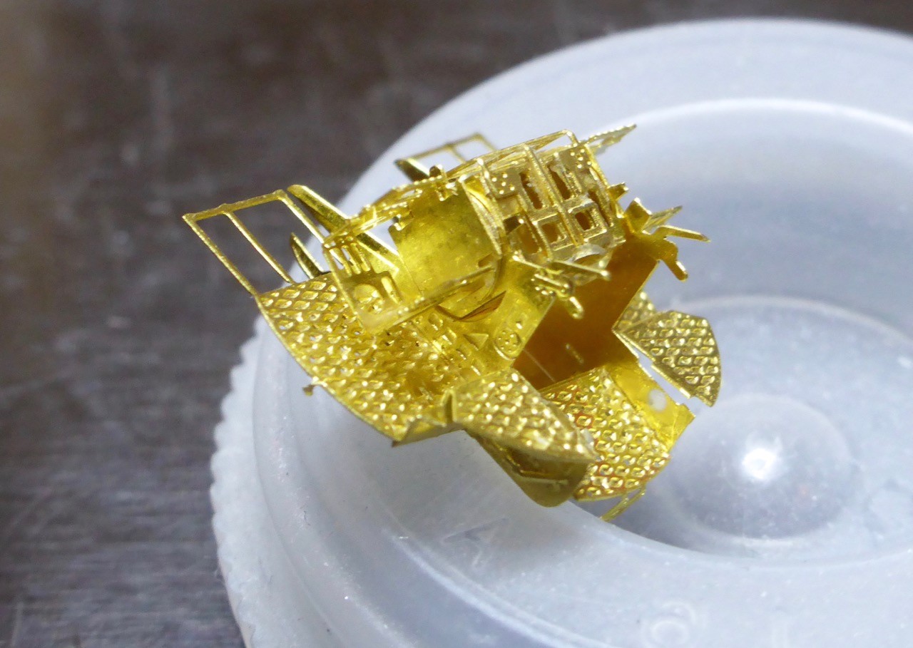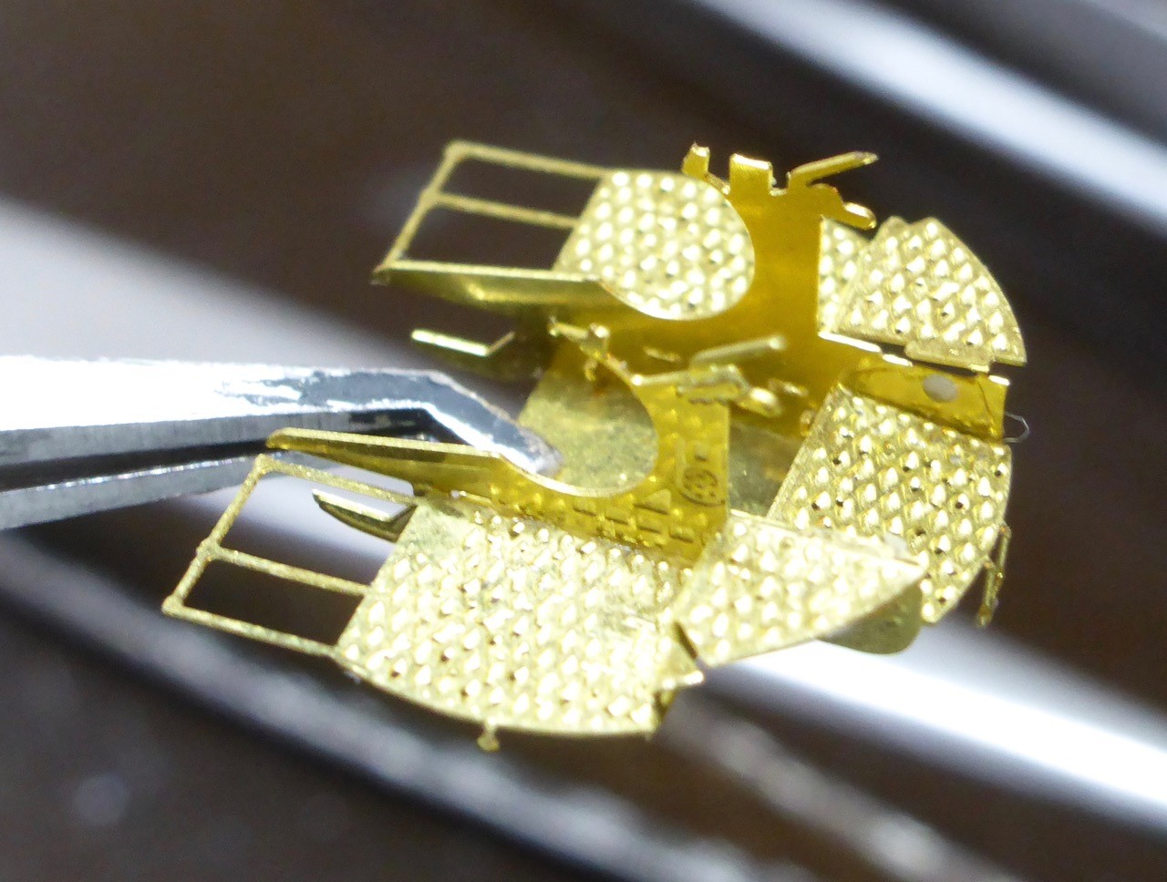 The kit is to build four. Two different length barrels are supplied, and some resin parts and one fret PE. The metal is rather thick and a little bit sturdy, but the etching is really good. So it is quite easy to handle, not really fragile, but this comes with a price: make sure you bend it right the first time. reversing the bend is likely to destroy the part...