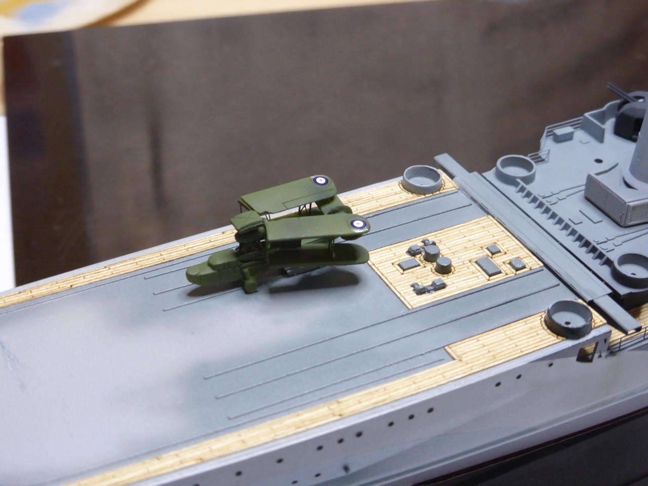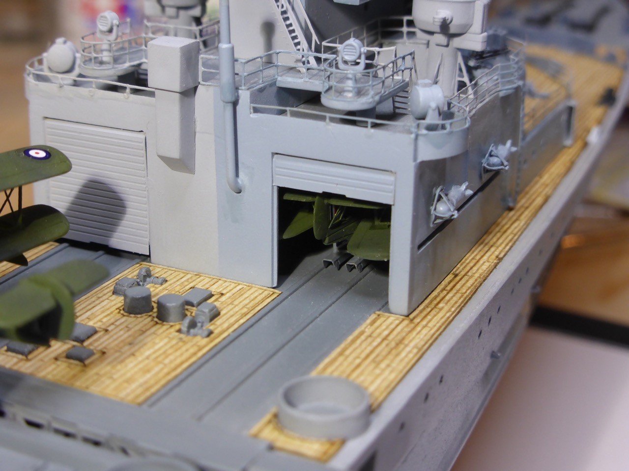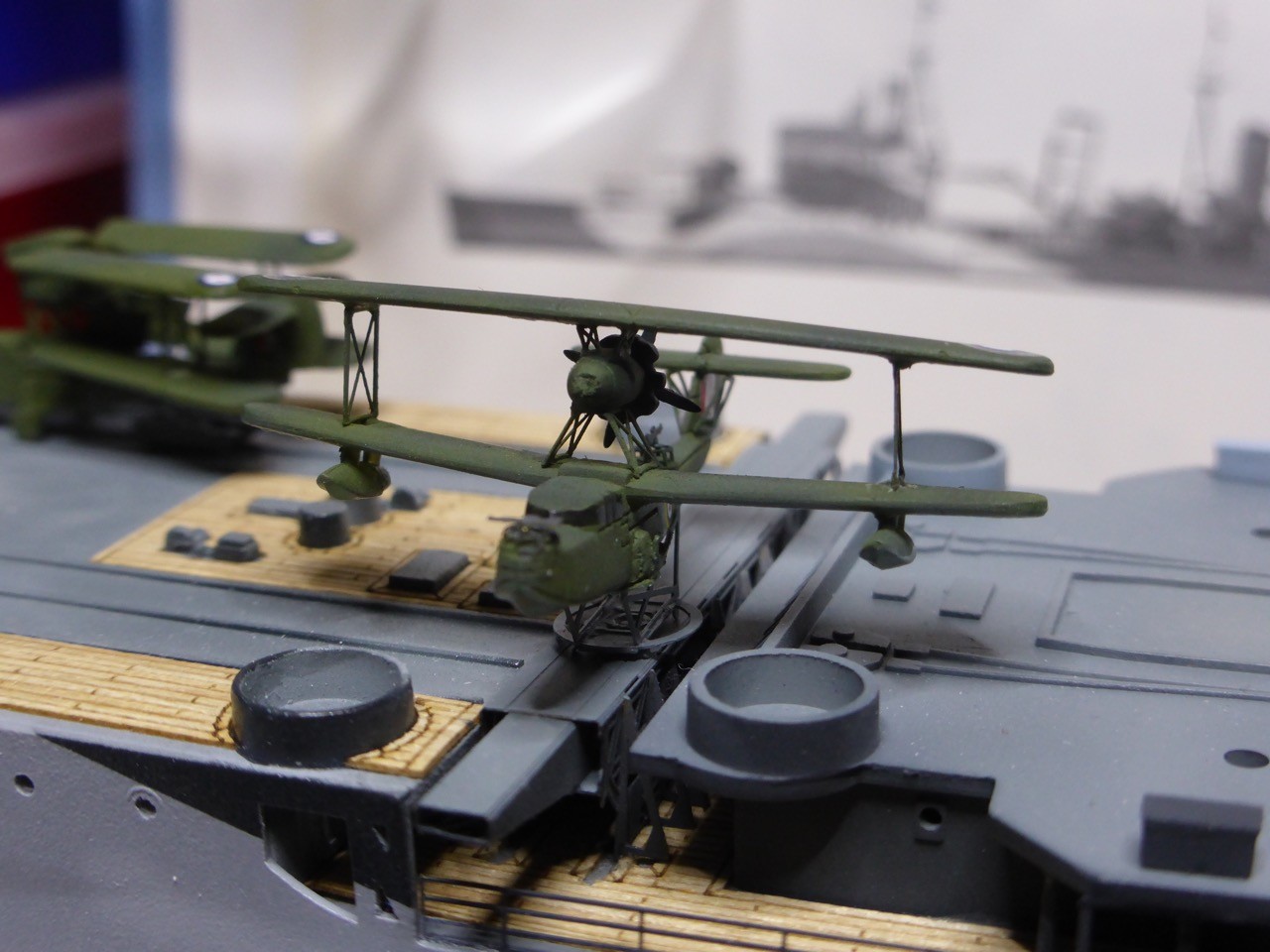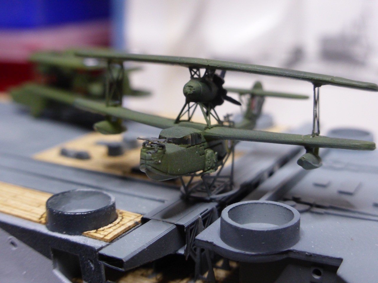 And yes, the folded one would be inside the hangar. I learned my lesson from REPULSE when I had to find out that the Walrus would not fit through the hangar door, so I placed it in front. For now, I have not installed the hangar - for two reasons, a) not to destroy all the fragile parts and b) to place the Walrus and than put the hangar on top. As how exactly that will work, i.e. how much will be visible outside, remains to be seen - trial and error.