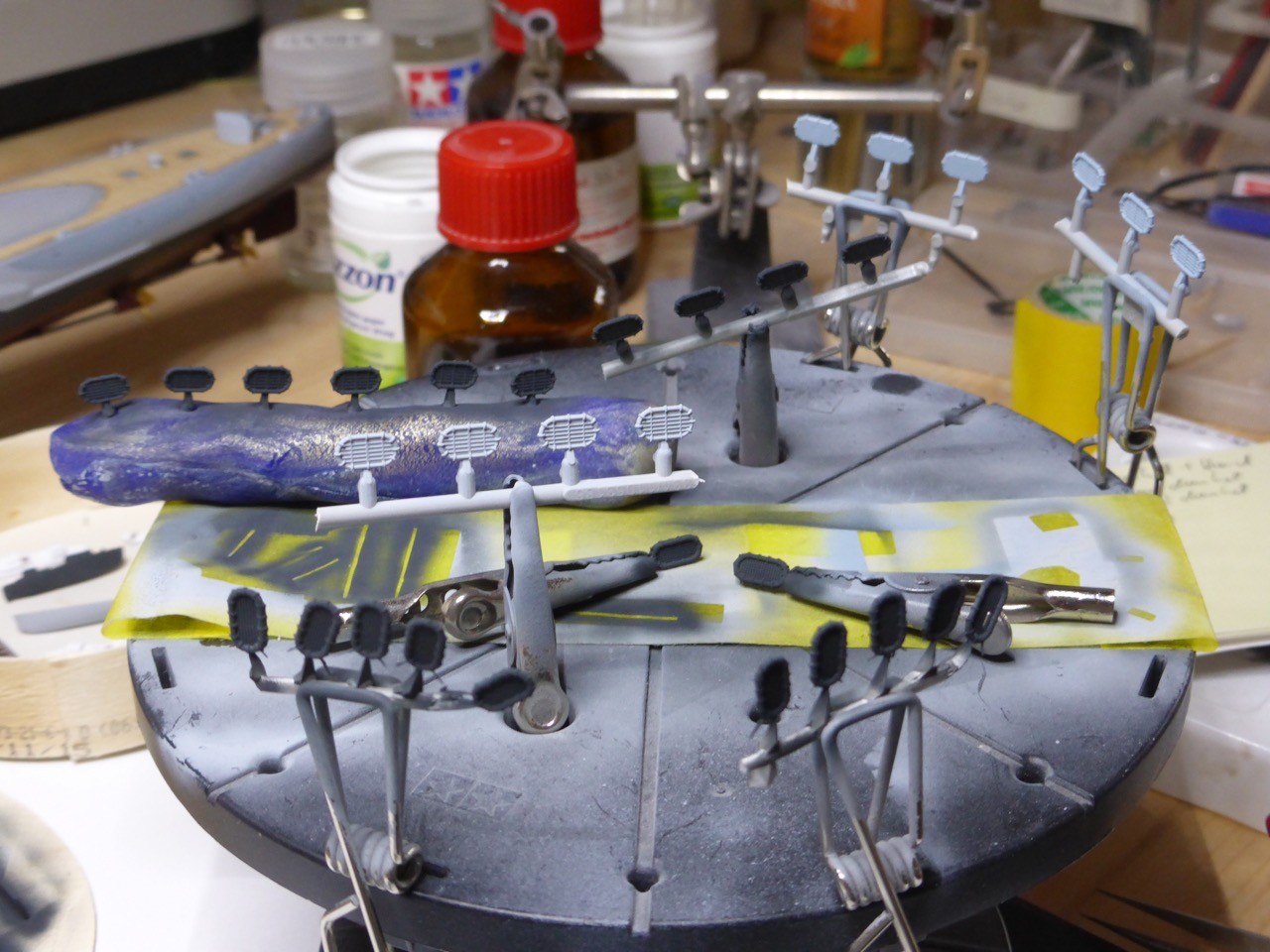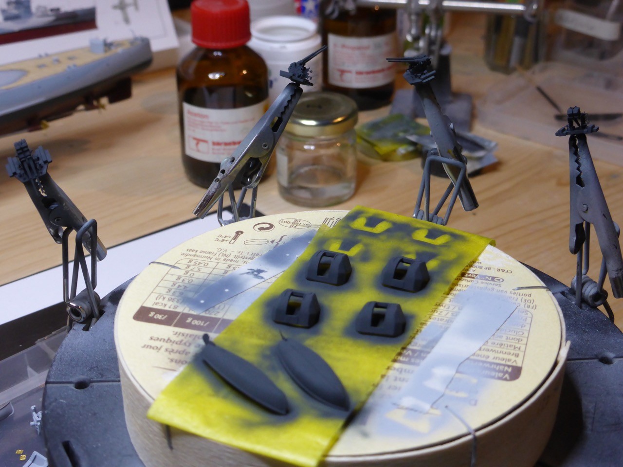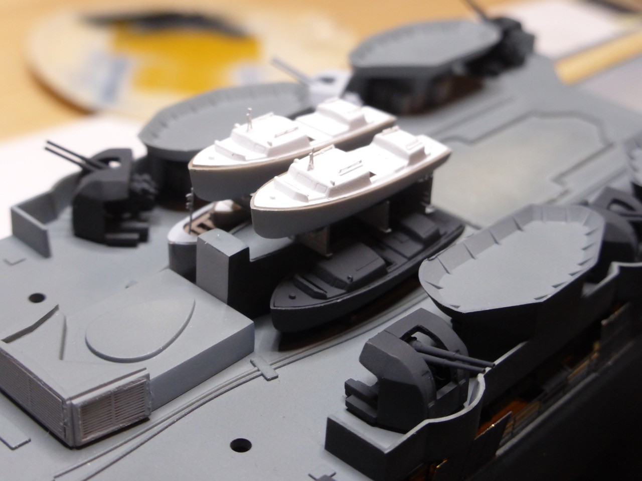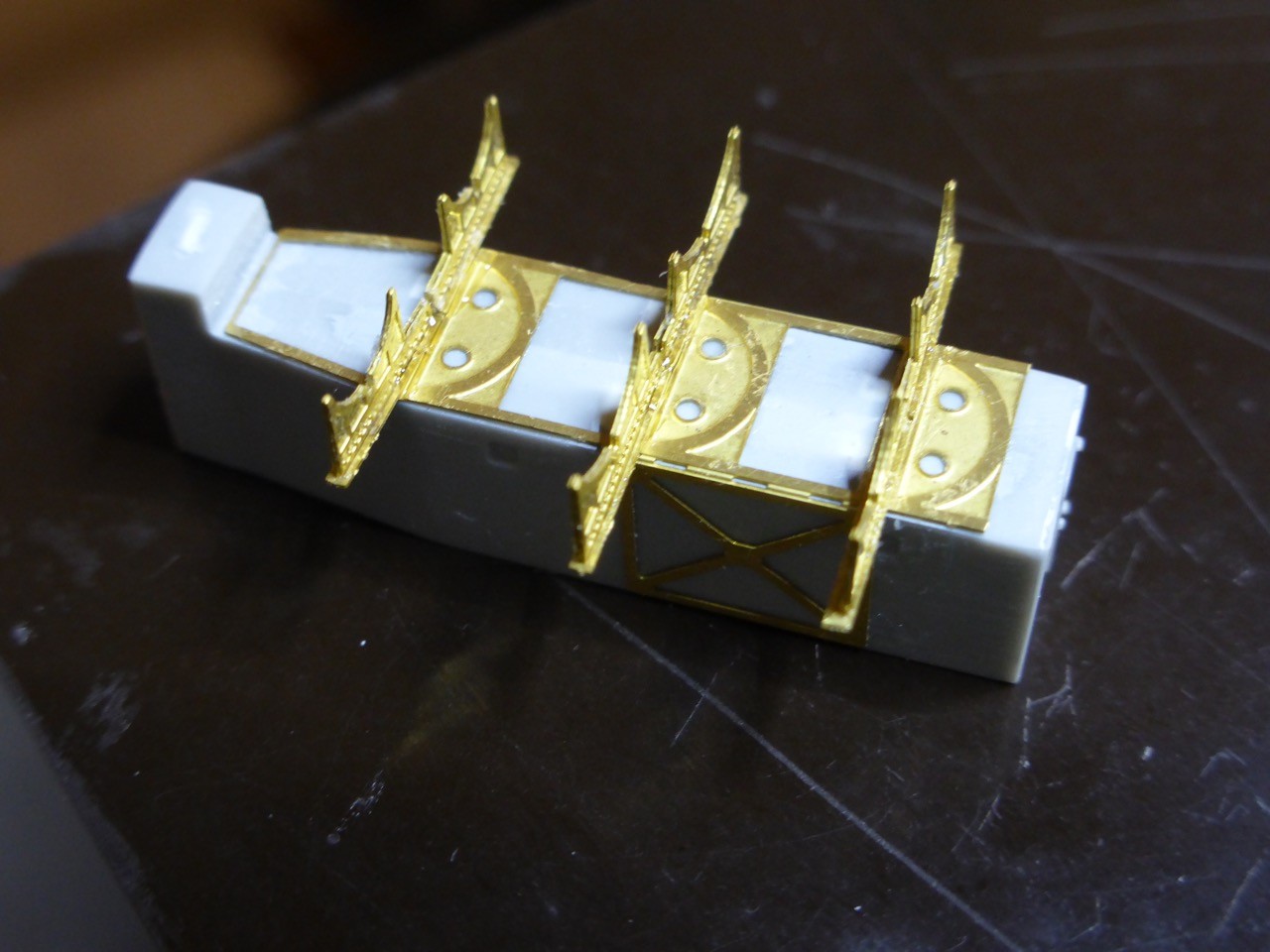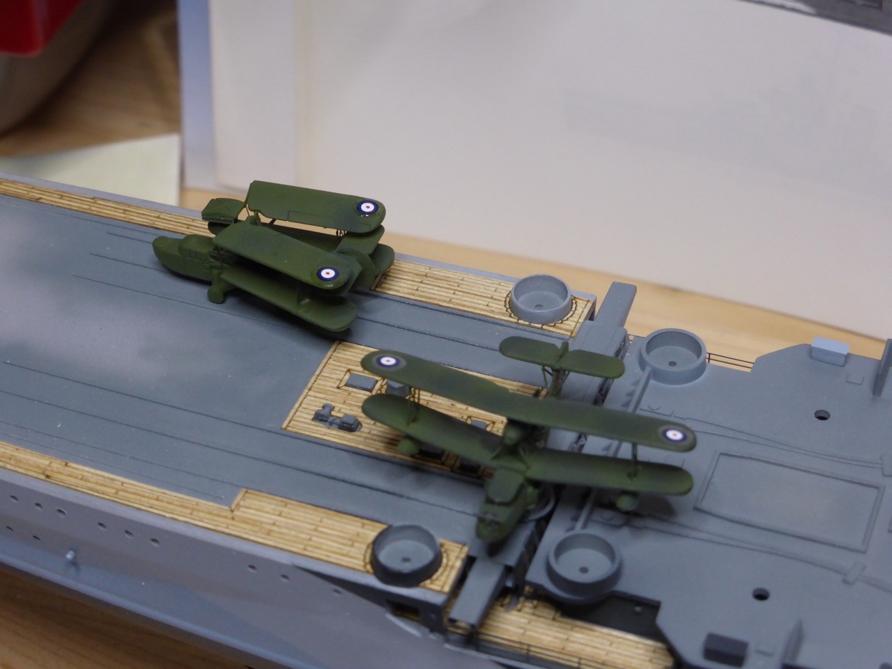 And yes, the folded one would be inside the hangar. I learned my lesson from REPULSE when I had to find out that the Walrus would not fit through the hangar door, so I placed it in front. For now, I have not installed the hangar - for two reasons, a) not to destroy all the fragile parts and b) to place the Walrus and than put the hangar on top. As how exactly that will work, i.e. how much will be visible outside, remains to be seen - trial and error.