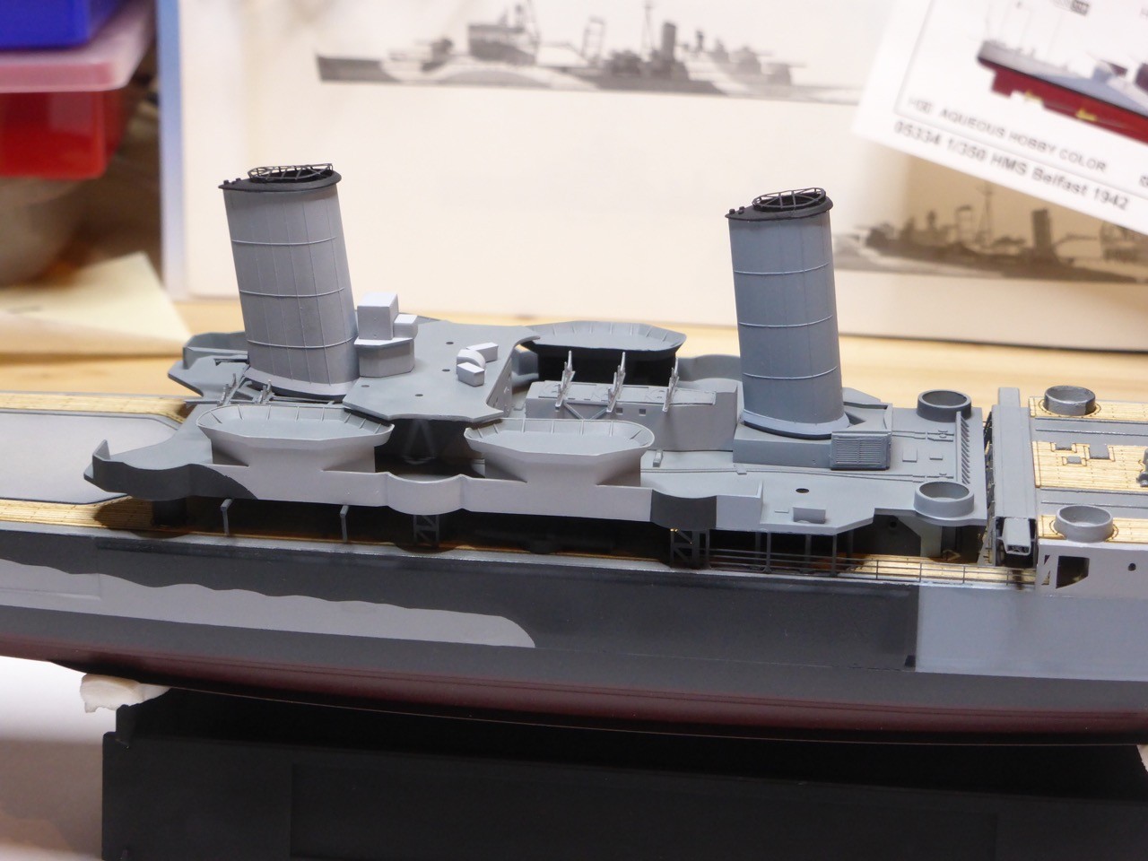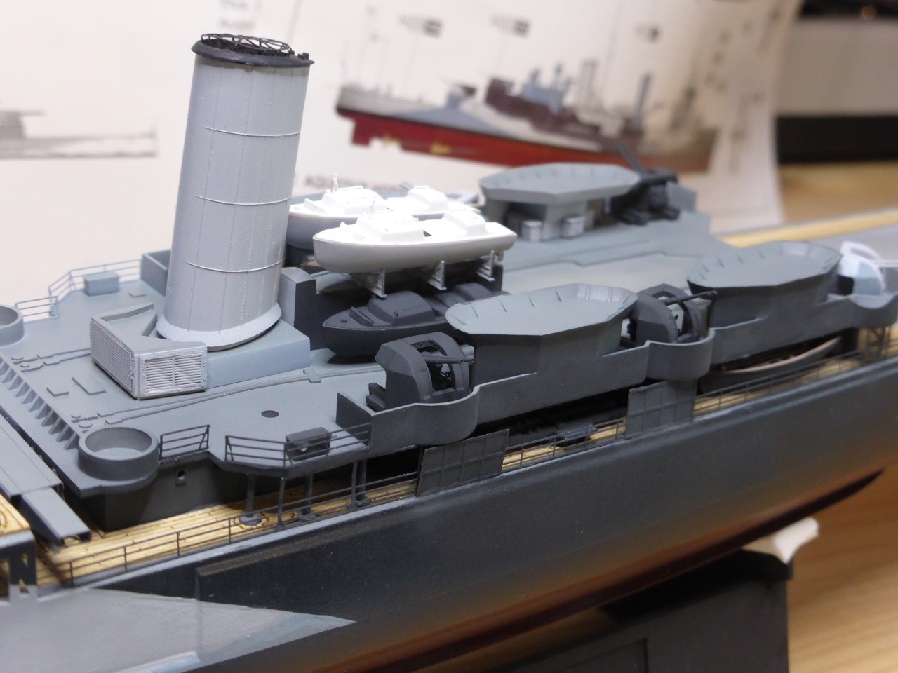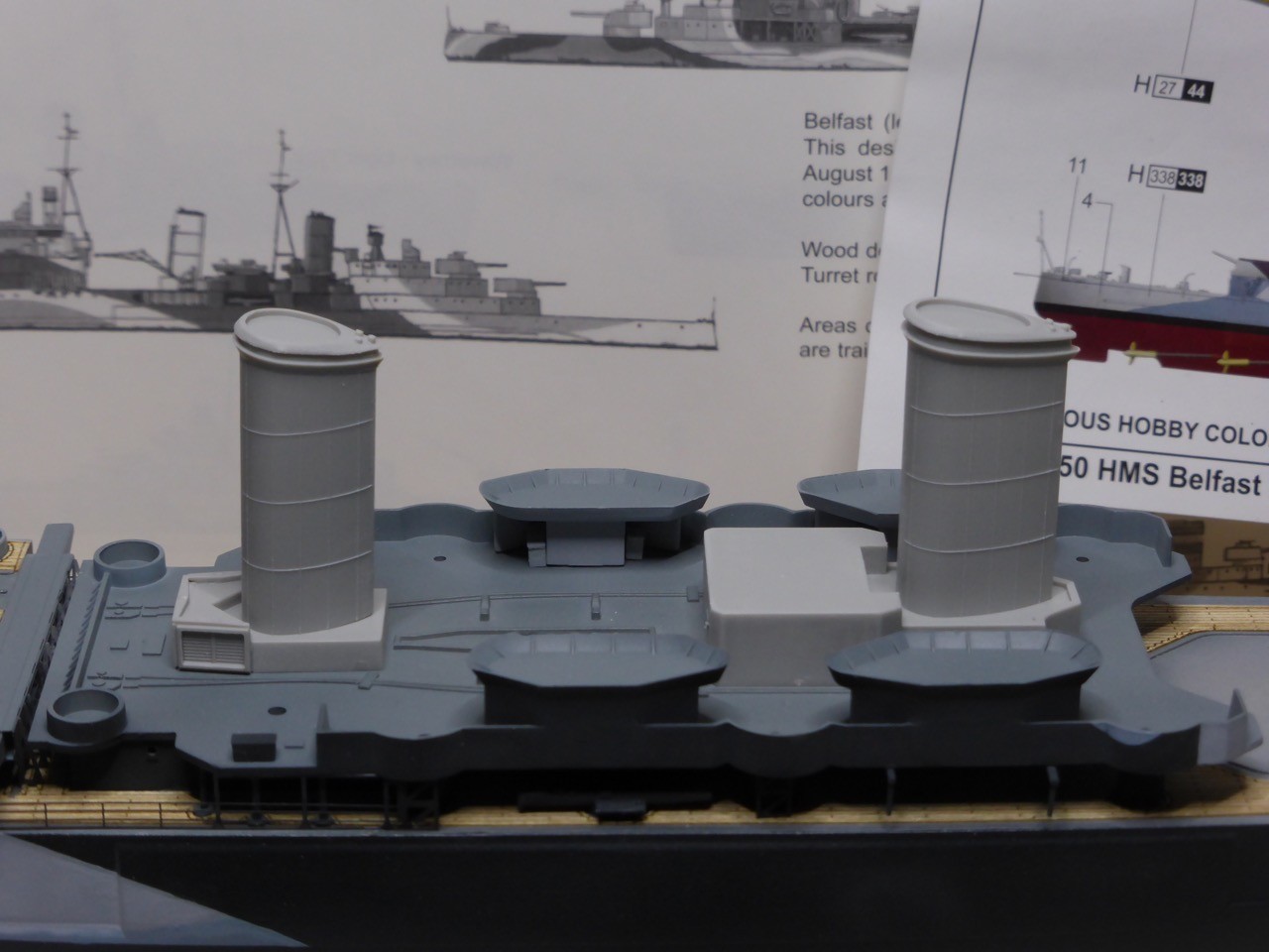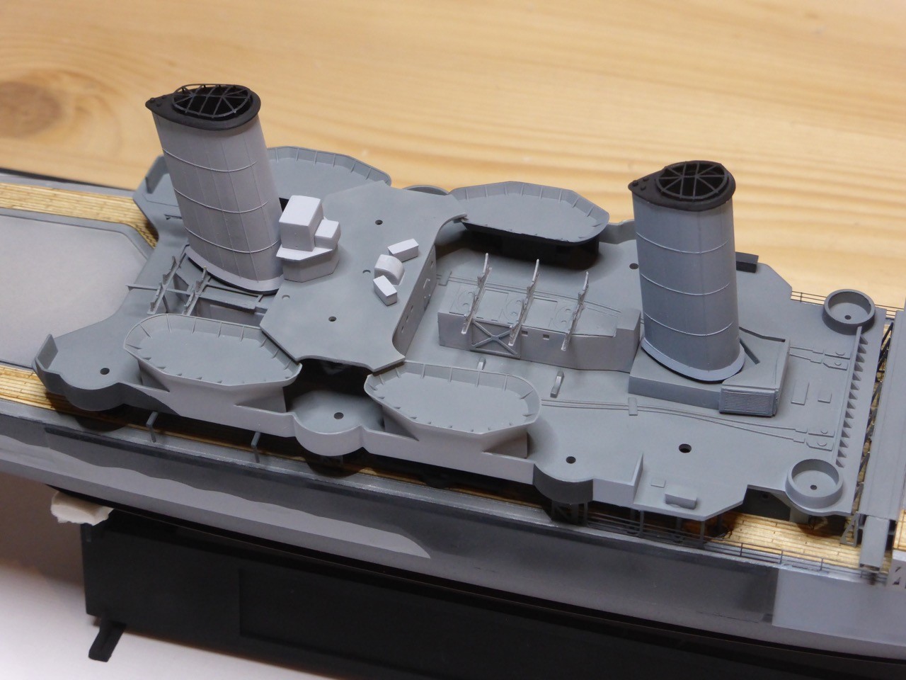 As for the stacks, well, that is pretty much the plan, however it was not 100% clear which stacks would be correct for which time...With dry fitting them and getting a whole ship impression I hope to get a better correlation to the AOTS drawings, or reference pictures from Raven and Roberts Cruiser book, to make my decision.