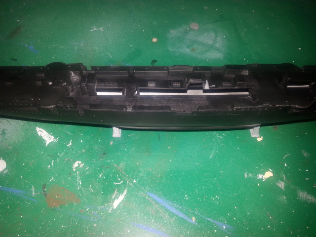 I worked and worked on it and was ready to quit. I just set my jaw and glued it down a little bit at a time until I got it to line up mostly. With a lot of glue, and a little putty, I managed to get it to look about right. So I preceded to paint it black. This gives me a bit of shading. [img] src="http://gallery.kitmaker.net/data/14749/2015-08-20_06_12_28.[/jpg]