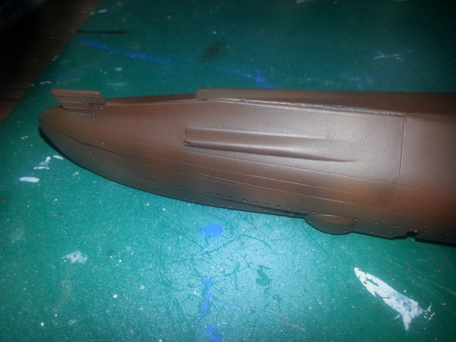 The final results aren't half bad. The whole idea is to give the hull a splotchy look that mimics corrosion, sea growth, etc.