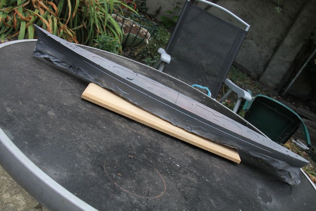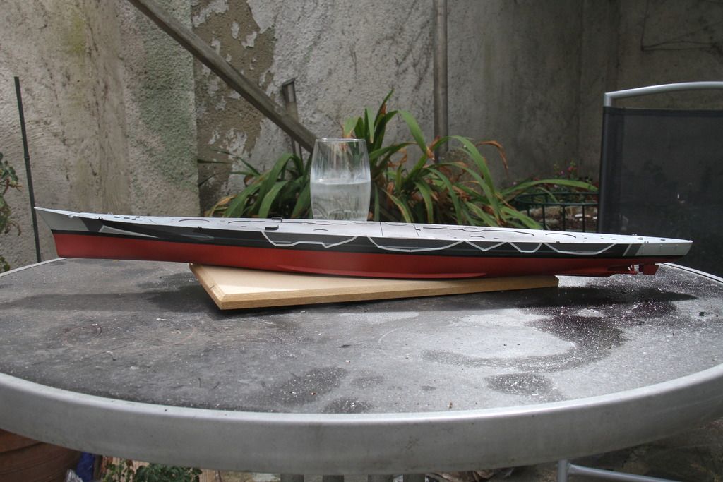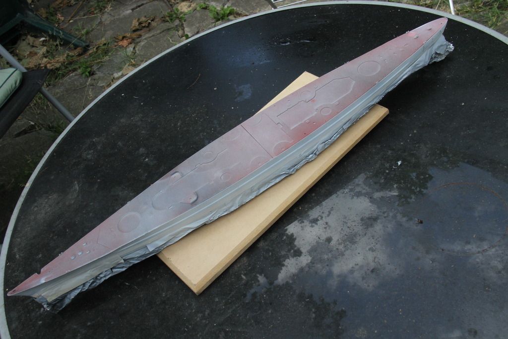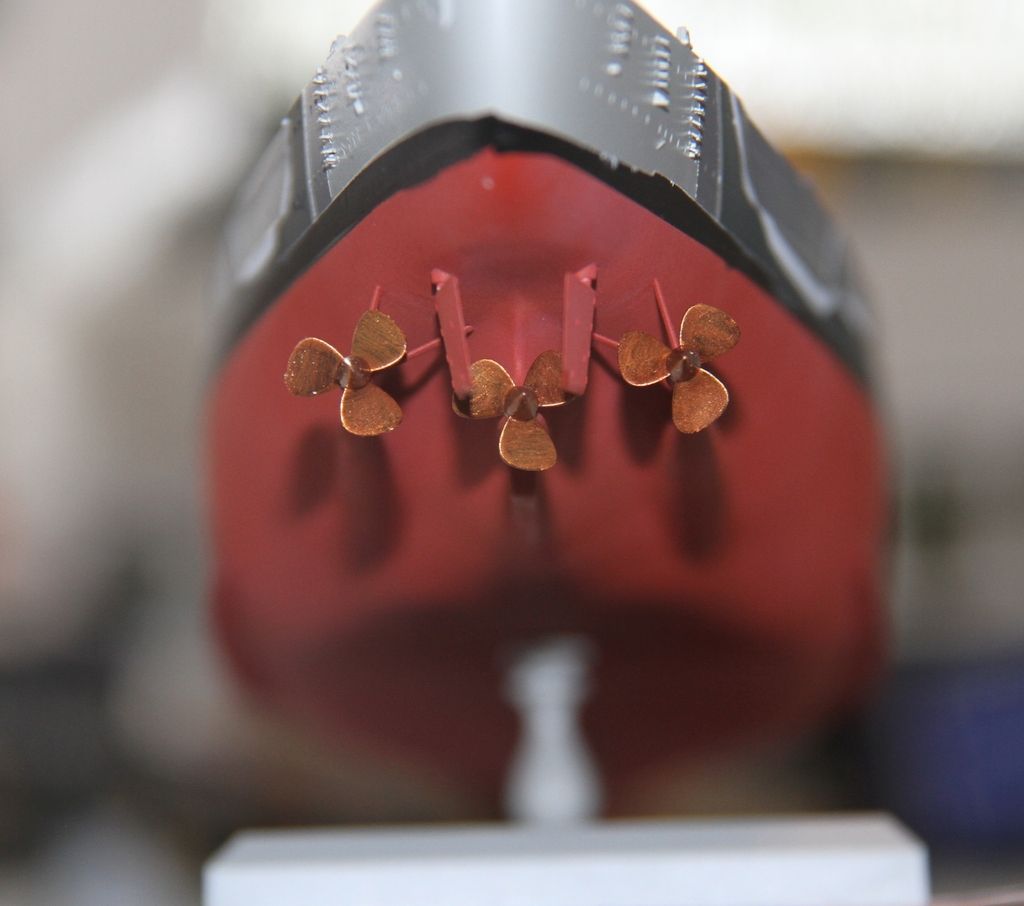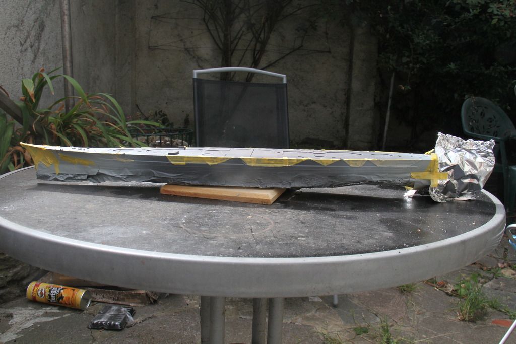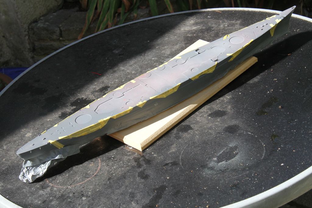 The light grey masked off, the foil around the stern is to protect the etched iron ladders.