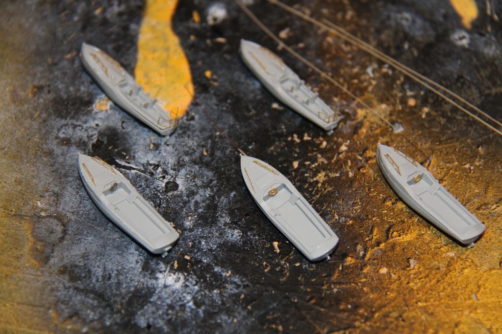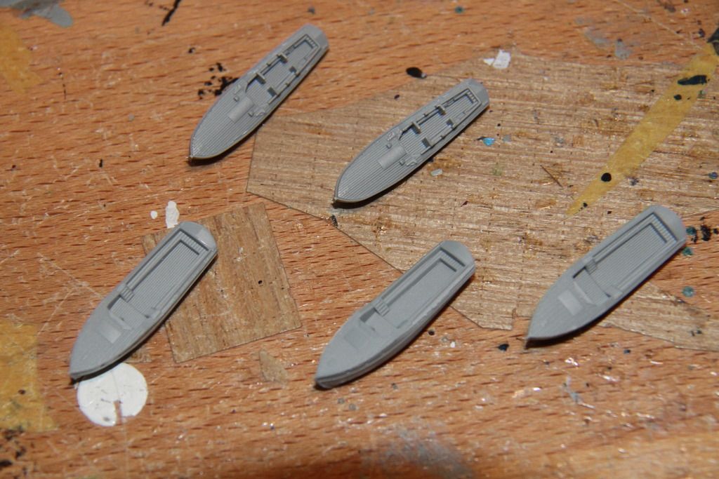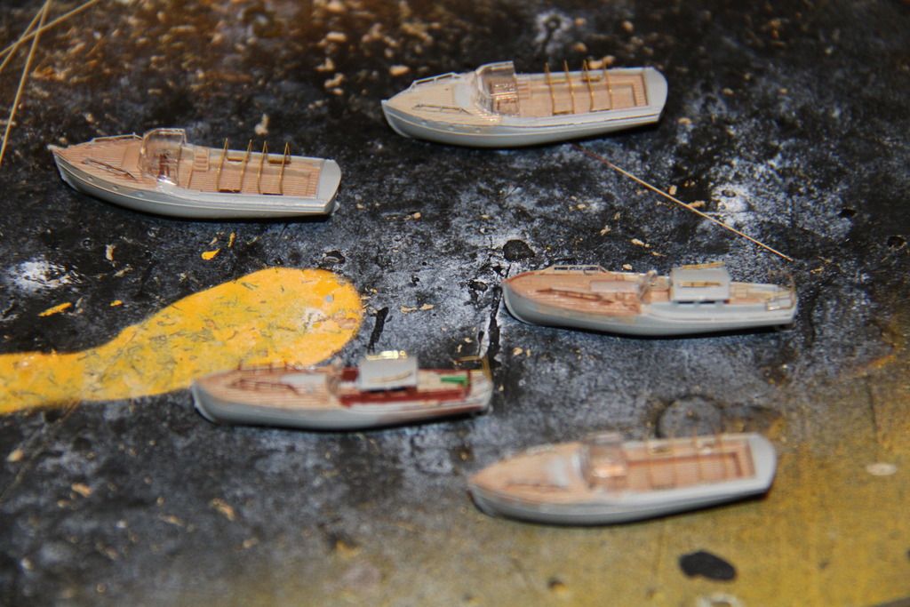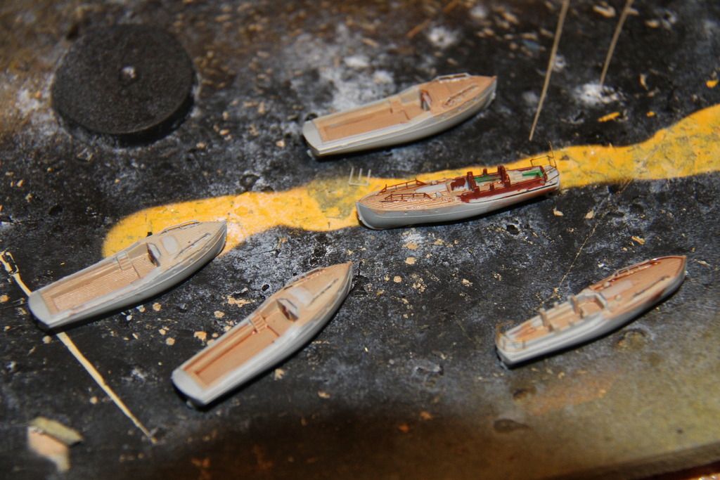Very nice start on the small boats - quite a few of them!! I am not sure whether the Admiral had a fancy barge at that stage of the war, it was all about camouflage and hiding. And Rear Admiral Bey was a destroyer guy rather than accustomed to big ships and their fanciness (at least in some areas). But making one of the barges look special will certainly add to the appearance, and I always like some creative gizmology, whenever it adds to the model!! So I do like the idea!!