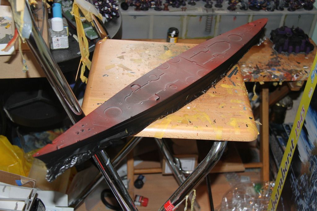 and the upper hull sprayed black, this will be masked off for the boot topping.