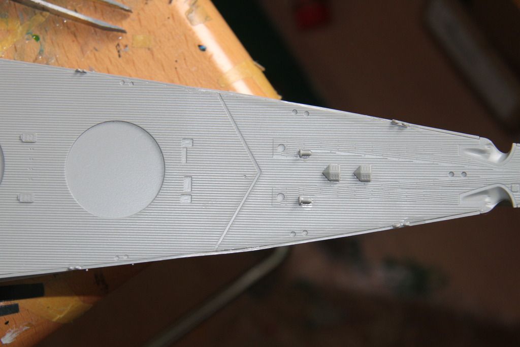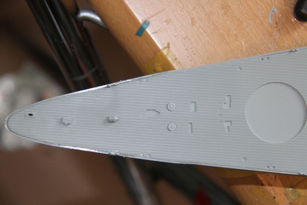 Fitted, the midships 4.1" gun deck test fitted to check the maindeck fit.