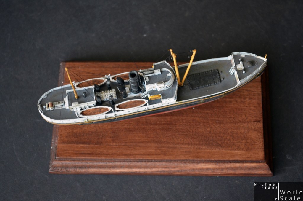 here is a small resin.kit .... the USCGC Cedar (WaGL 207) in scale 1/350 by Iron Shipwrights. It is a small kit constising of Resing and etched parts. Several resin parts were damaged and were made new in plastic. Also some further plastic details and etched parts (portholes and more from Eduard's Bismarck set). The painting was made with lifecolor and oilcolors, as well as some pigments. The rigging with EZ-line.