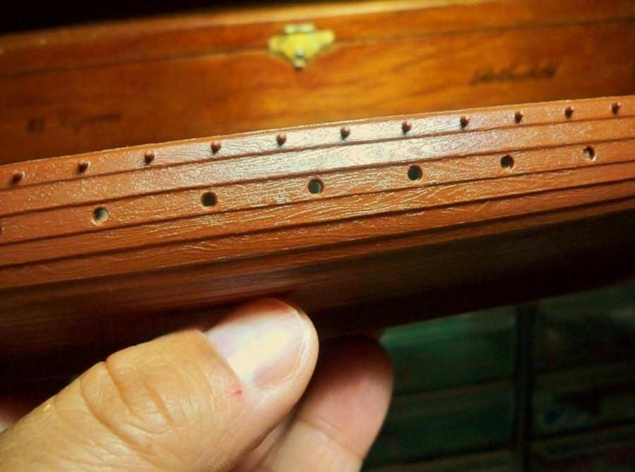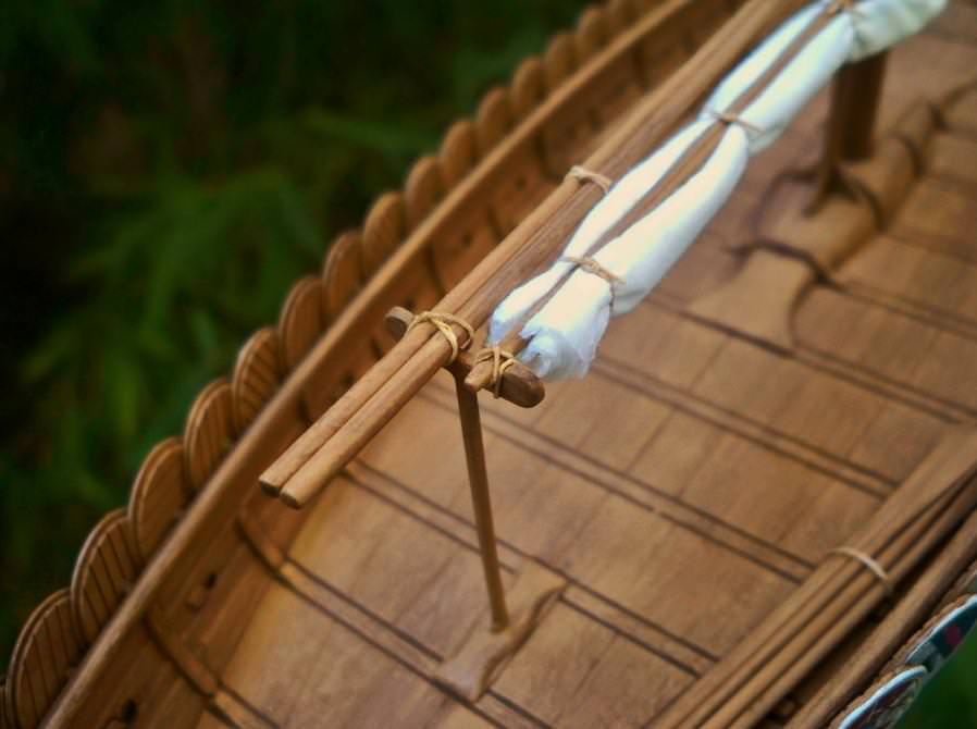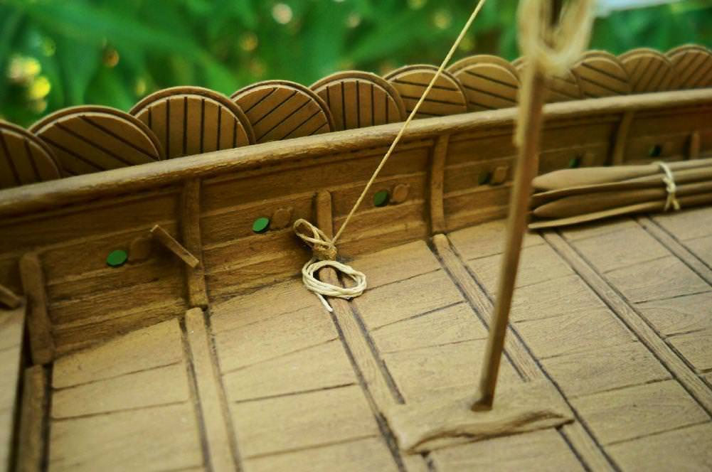 Another excellent build my friend. You're right, the shields do provide a lot of color and the wood looks spot on. I really like the rigging you installed. Those butterfly blocks look great. Great job!