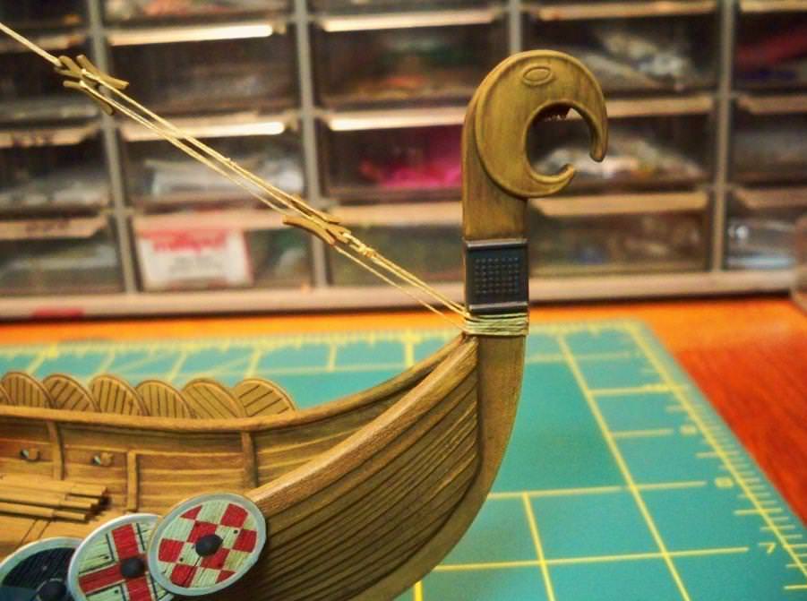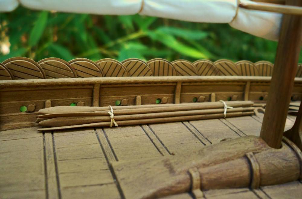 You're right, that wood grain really looks good. Really looking forward to seeing it painted. I had a question when I was working on my long ship that I thought I would ask you and the other campaign members. It concerns the number of shields hung on the ship sides. You mentioned there are 64 shields and 32 oars in the kit. I know 32 shields would be for the oarsmen. Would the long ship have been able to take on an additional 32 warriors without swamping the ship? The long ships had low freeboard anyway so I was just curious. Maybe they took turns rowing and had two crews for propulsion. Who knows? Anyway really lloking to your next progress report.