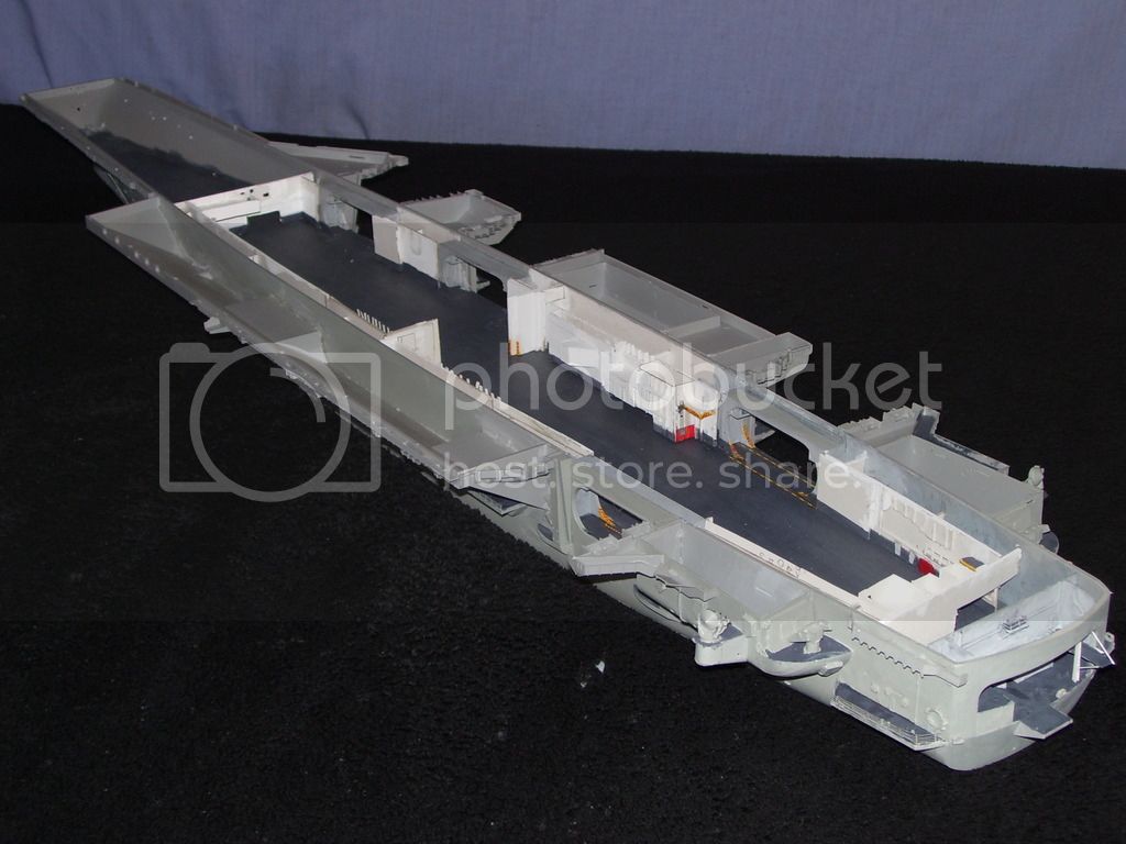 Thanks Guys, just added the last sposons on the ship. Waiting for the p.e. railings I order. In the mean time laying the warning decals inside the hangar bay and walls.