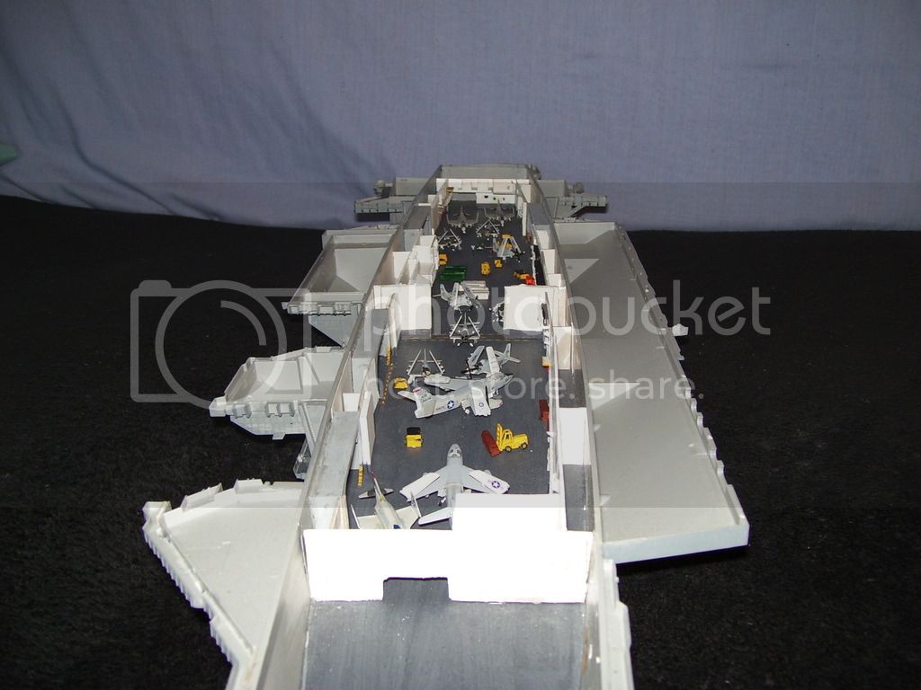 Started on the hangar bay aircraft and equipment. Maybe about 15 aircraft and a few equipment inside.