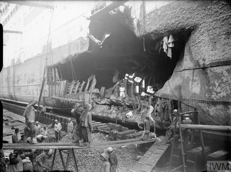 Ever wanted to model torpedo damage? Here's a great image of the hospital ship HMHS Somersetshire in Egypt:
