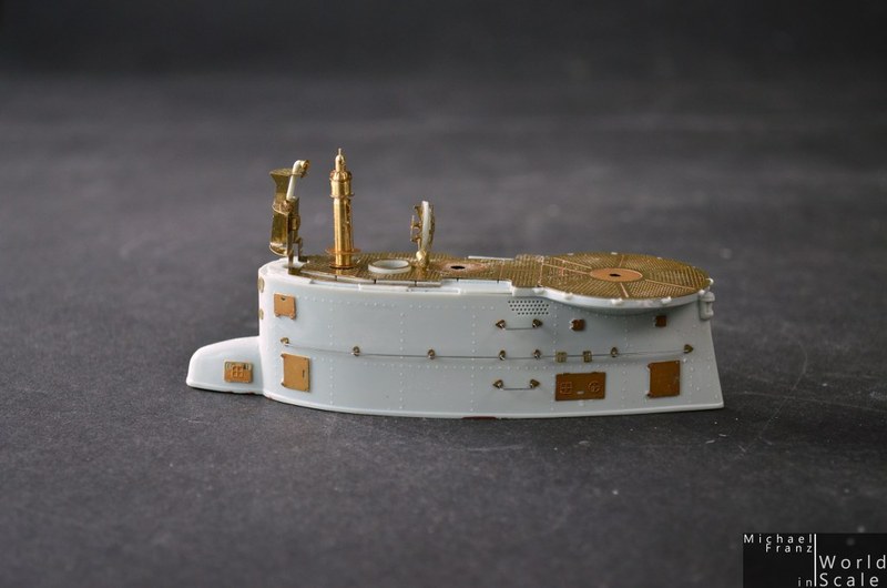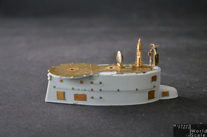 The turret received several further metal parts… etched parts from RC-Subs, etched parts from Pontos and some turned brass parts also from Pontos Models.