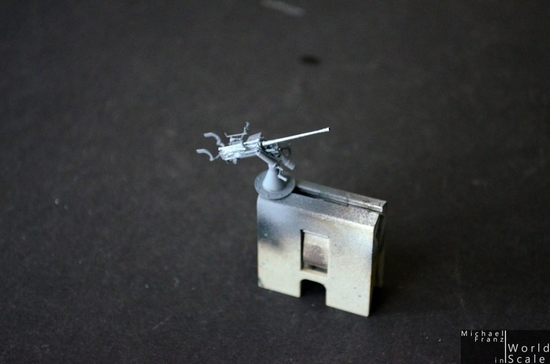 Next Stepp…. Washings in black oil color, white oil color on the turret, some airbrush grey on the turret…. Matt clear coat on the turret …..