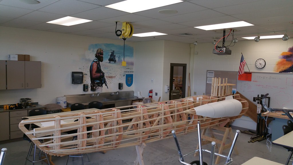 A high school art teacher in Wyoming took on a project to build a 30 foot Type VIIC U-boat to suspend from the ceiling by the entrance to their school's US History/World History class room. These images are select from the forum he posted in. His first post announcing the project in late August of last year and most recent updates are from this past week: