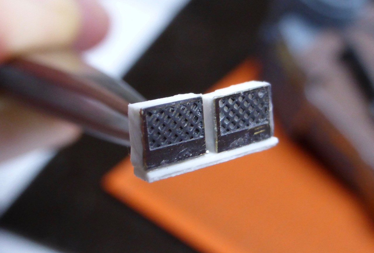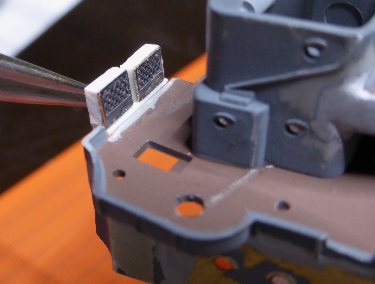 But trying to find a quick and stupid solution to achieve the impression of a locker with multiple compartments, I abused some Eduard etch that I missed to use for the vents (simply didn't see it existed in time...). The size of the grit is pretty much the size of the flag lockers