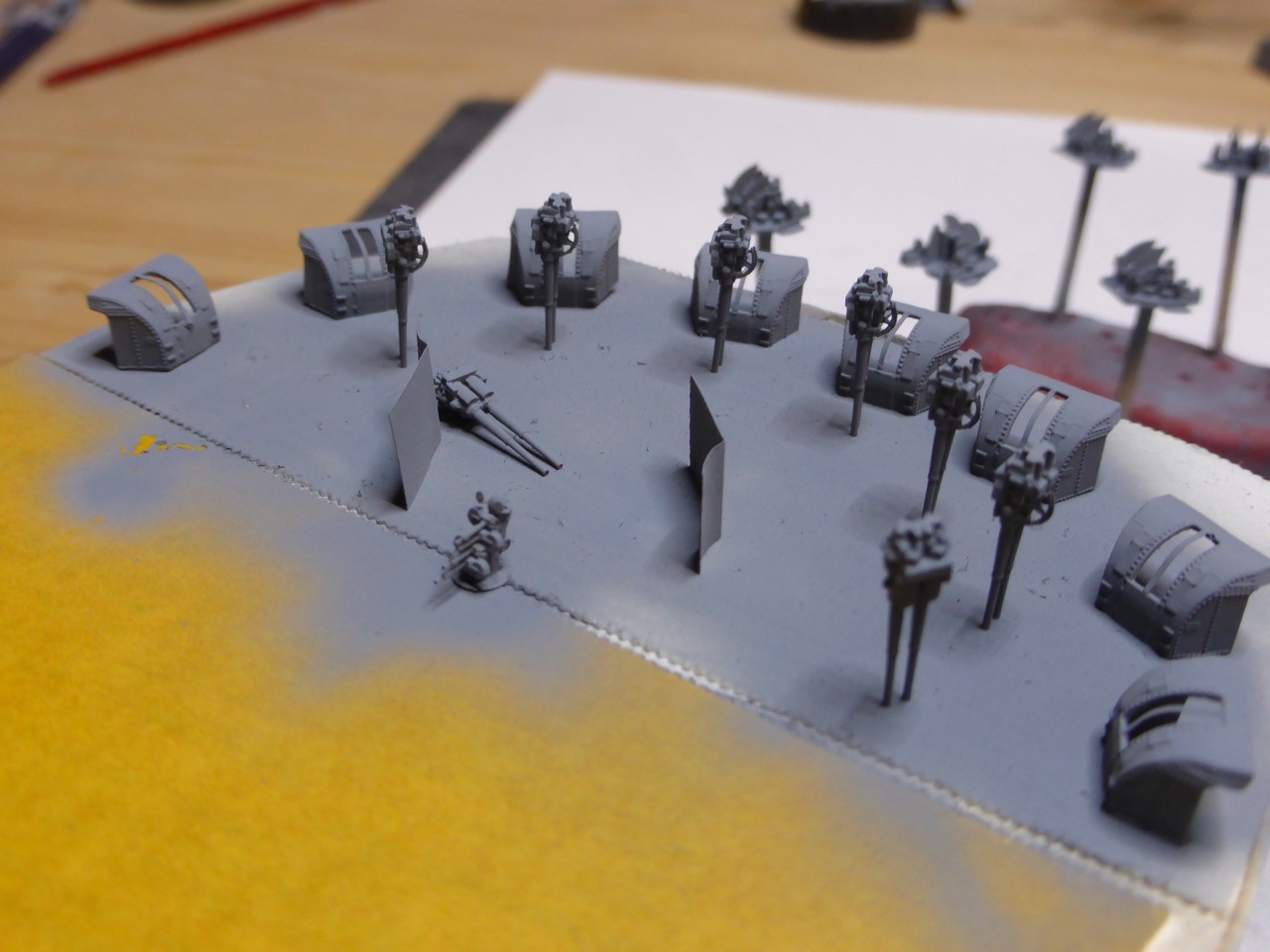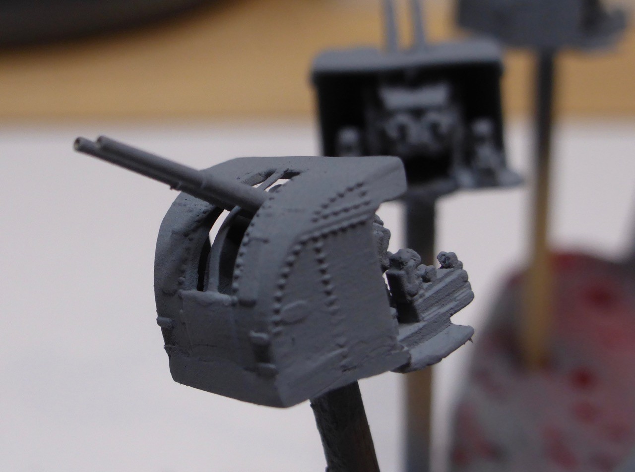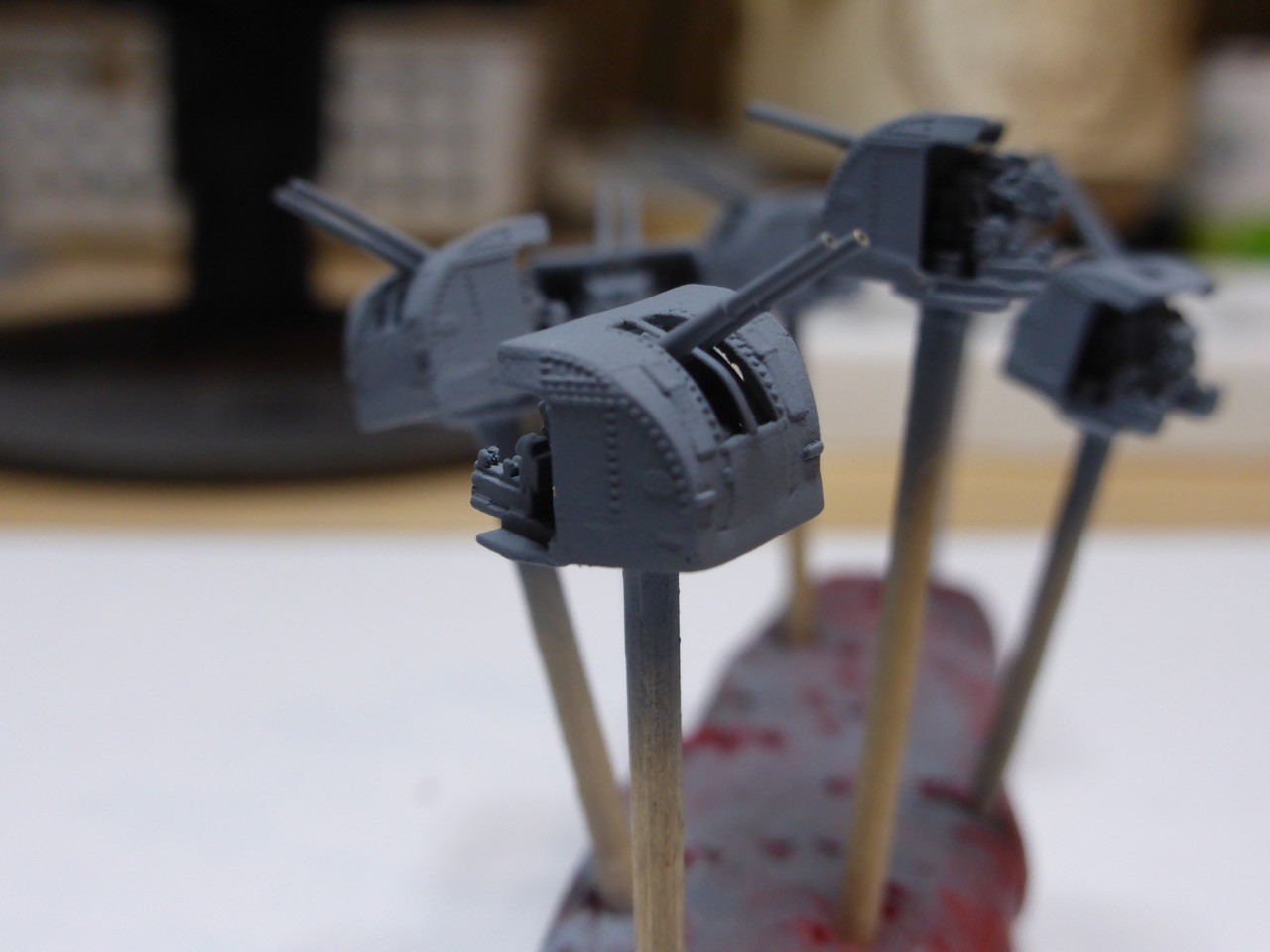 And the painted 4" AA, after sanding my improvised shield extension. Not perfect, but considering where this parts actually will be eventually (low to the deck and conceals behind splinter shields for the most part) that should do...