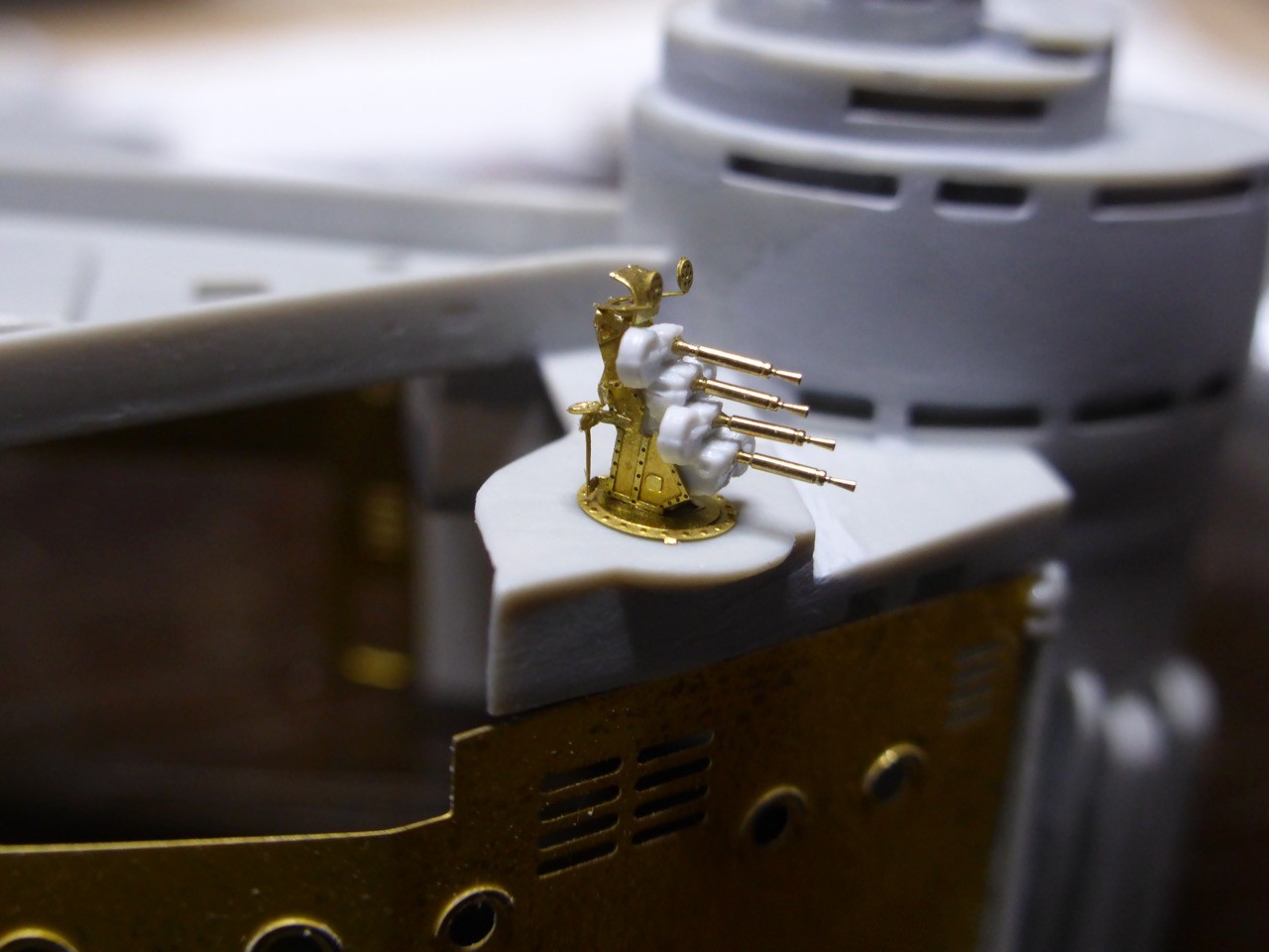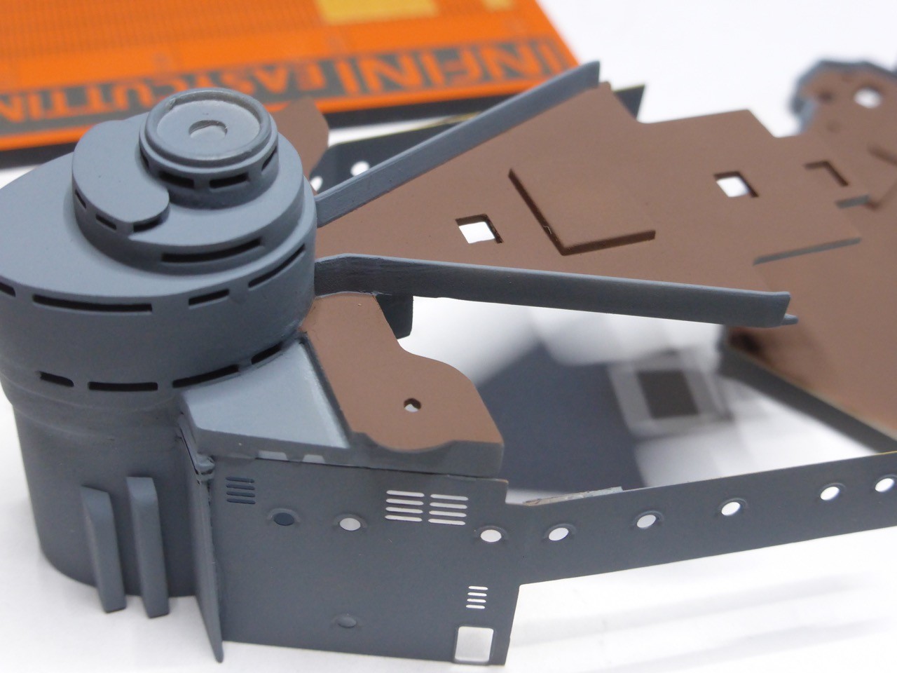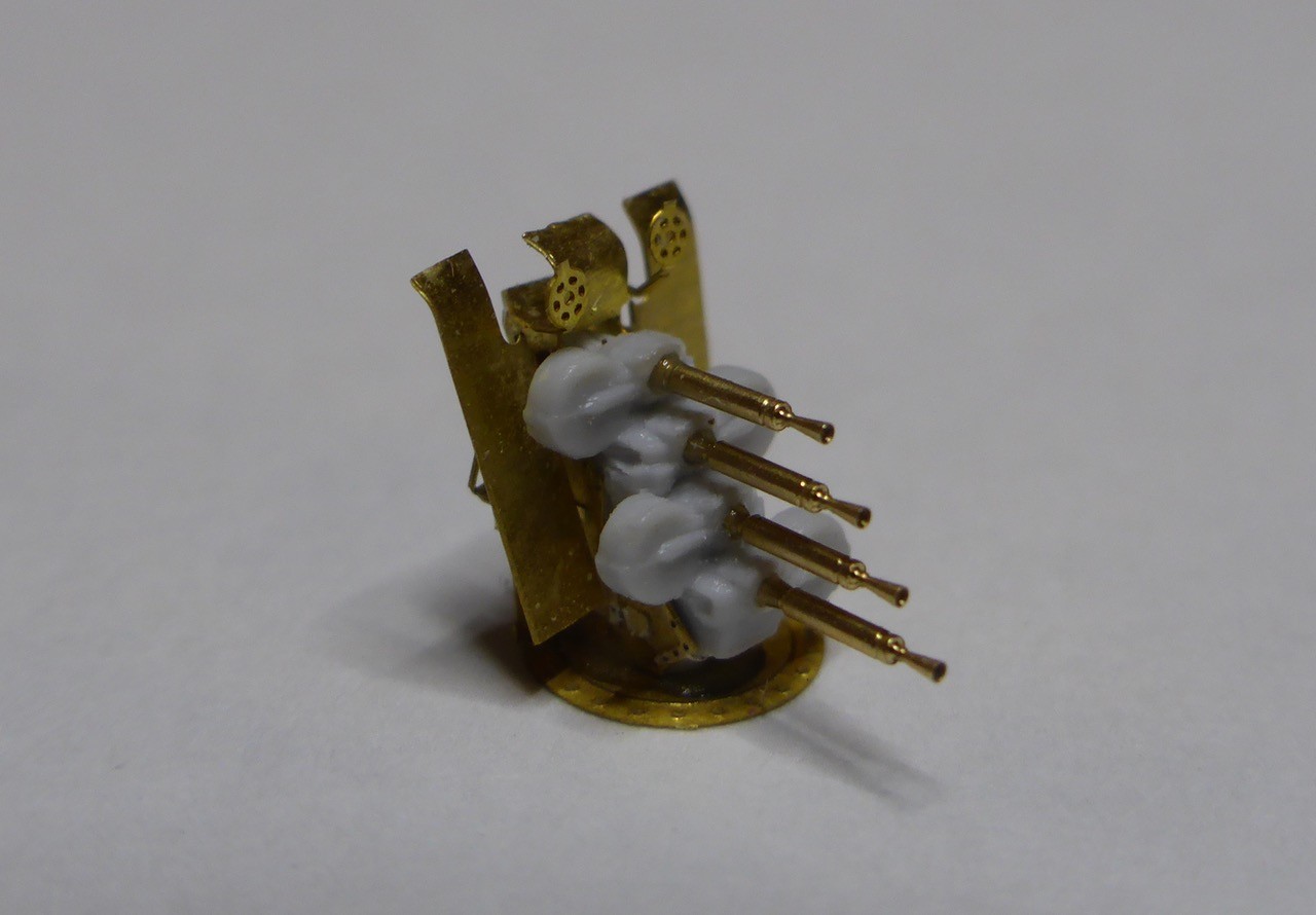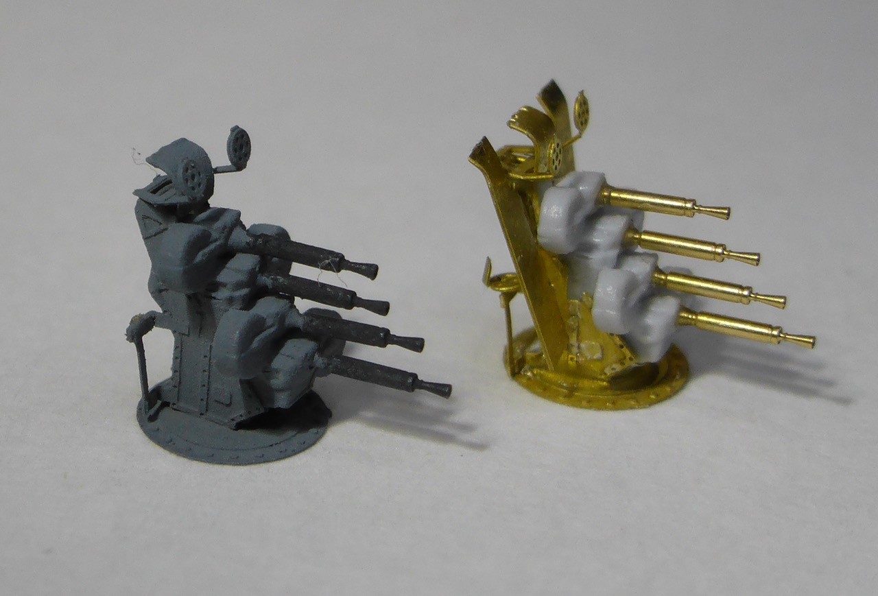 And the painted 4" AA, after sanding my improvised shield extension. Not perfect, but considering where this parts actually will be eventually (low to the deck and conceals behind splinter shields for the most part) that should do...