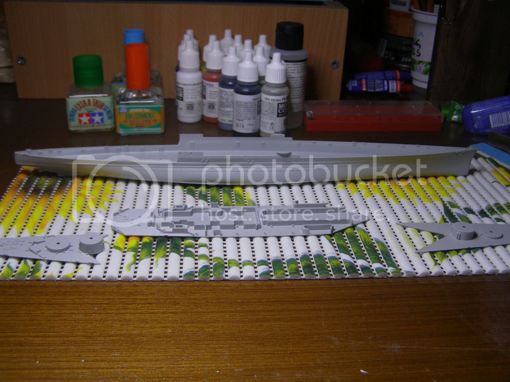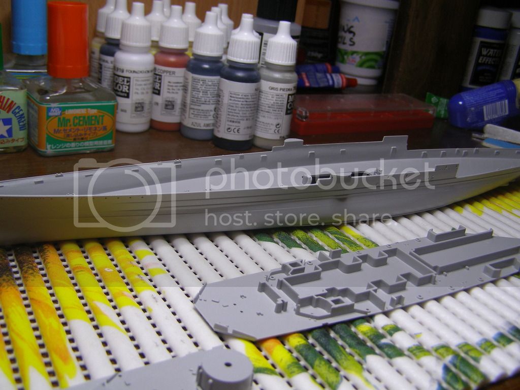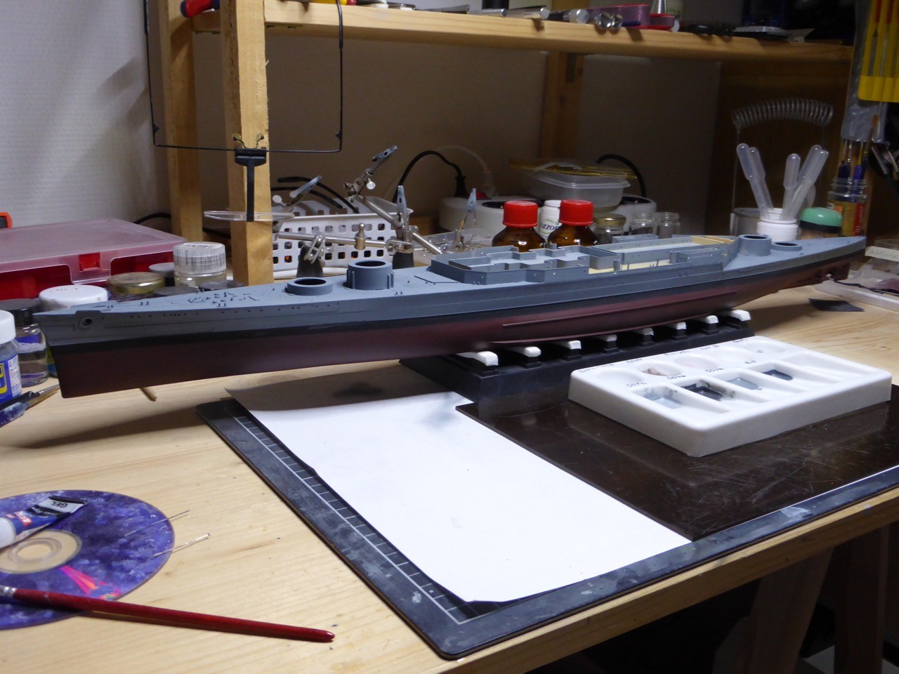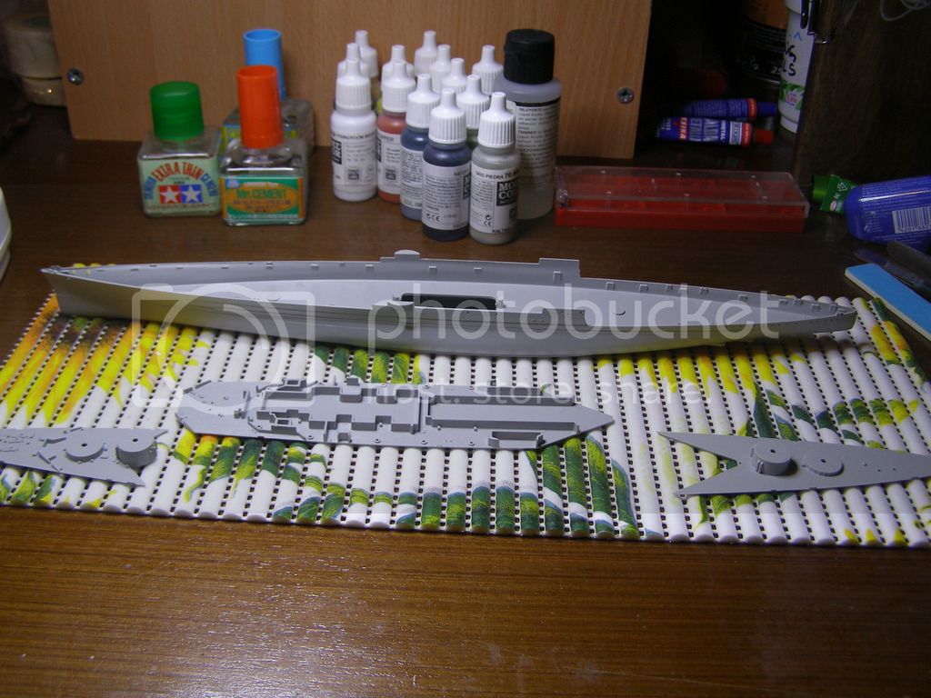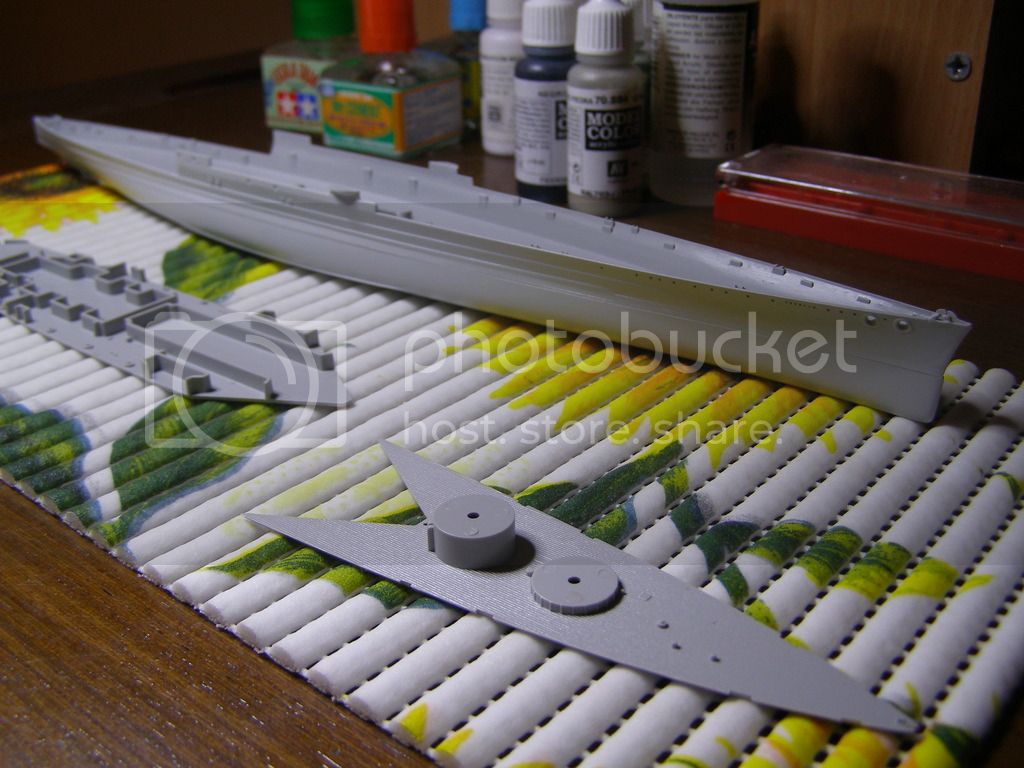 Small update on the Italeri Hood. The fit of the three-part hull is actually perfect, no oversize of either upper or lower half (it appeared that there is a difference of 2-3 mm during dry-fit check because lower hull - underwater part was bent from mold ejectors). Lower hull actually comes in two parts (port and starboard halves) which complicates the assembly a little in terms of proper alignment. Anyhow here are the pics...
