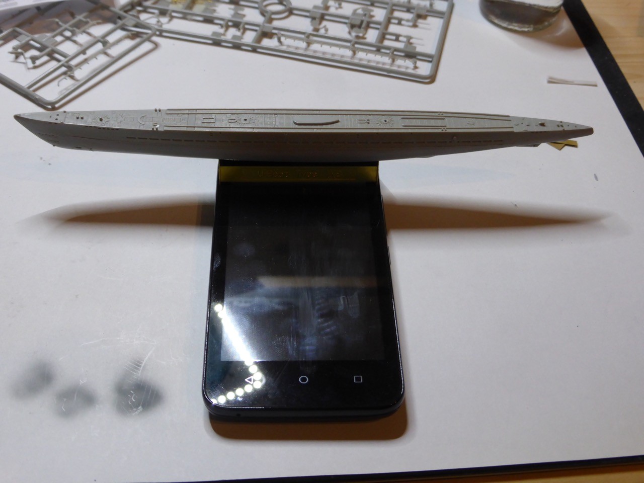 Hull halves go together very smoothly, only a little bit sanding and surfacer needed and all should be fine: