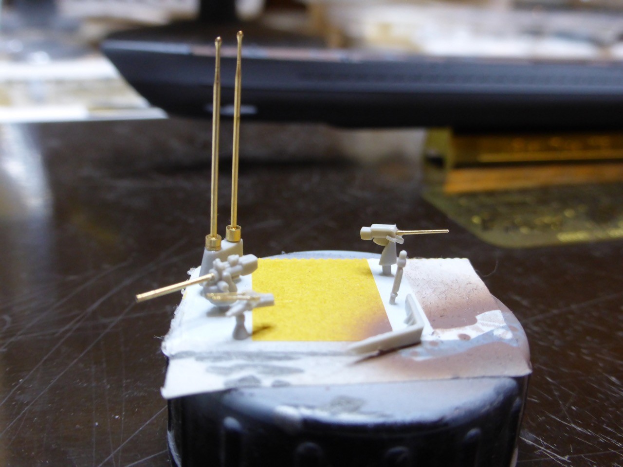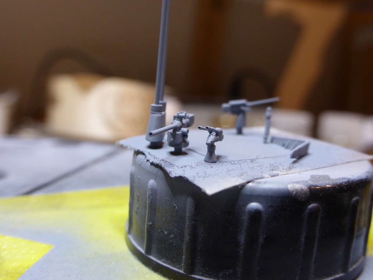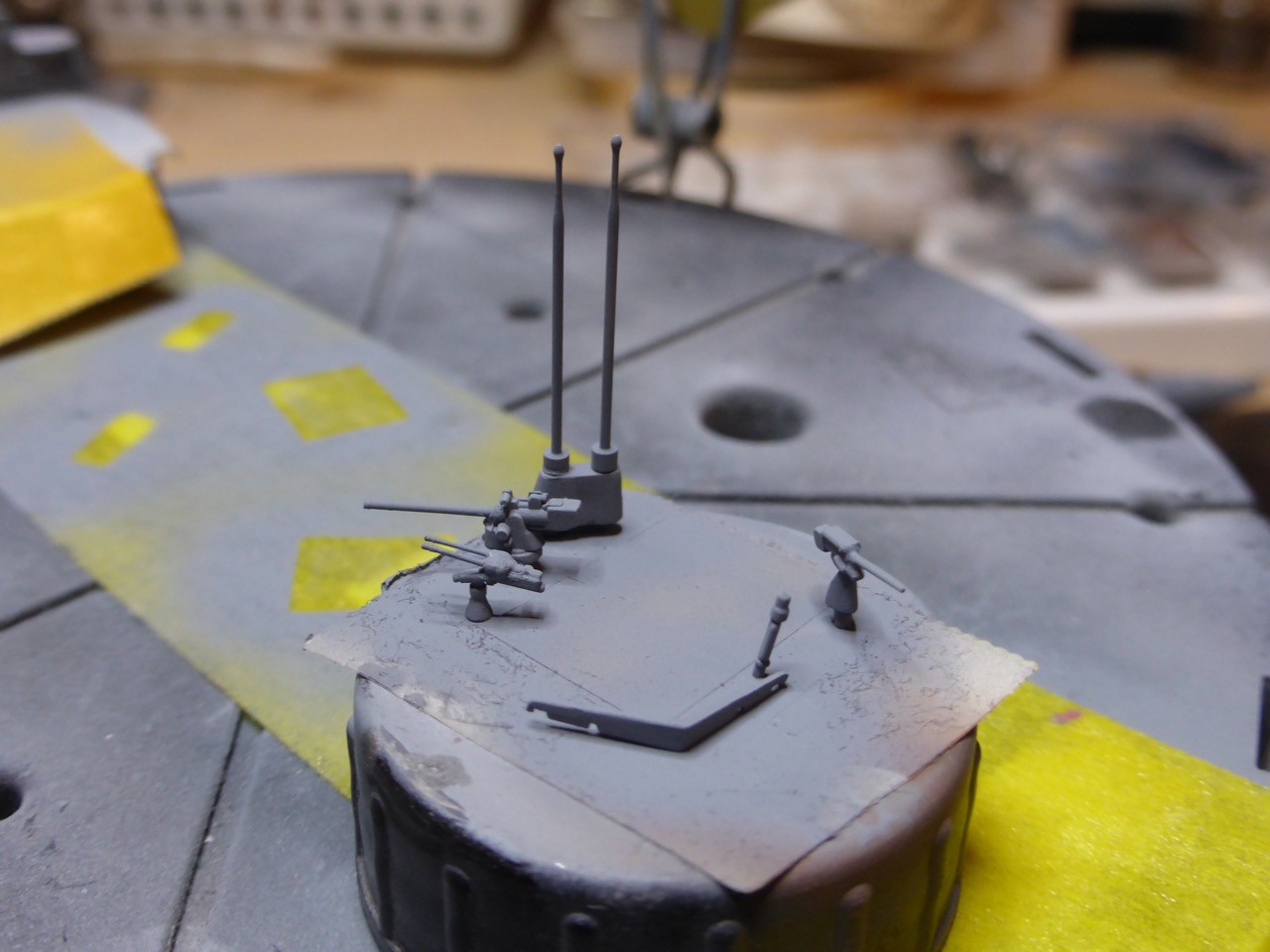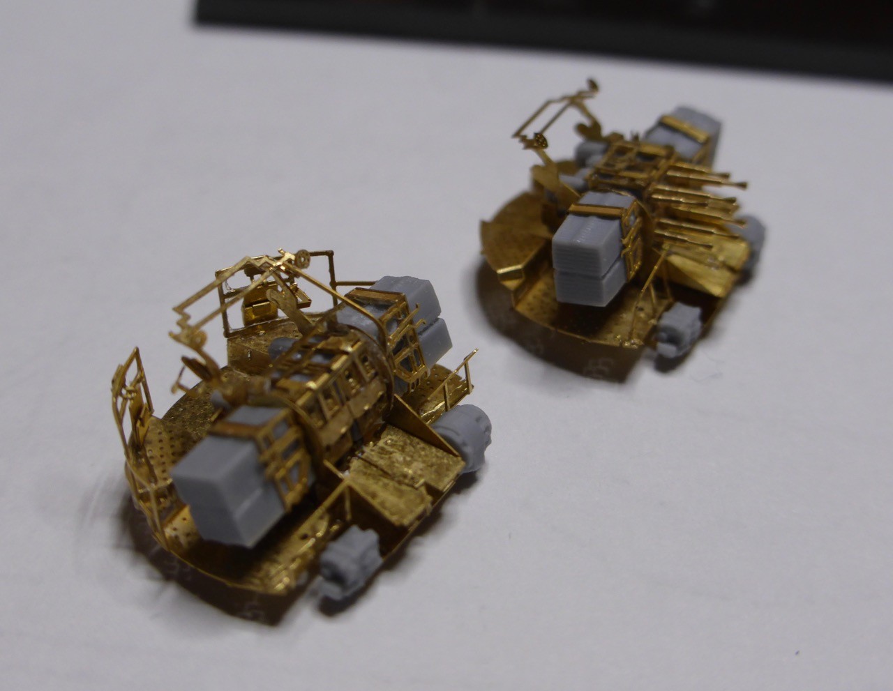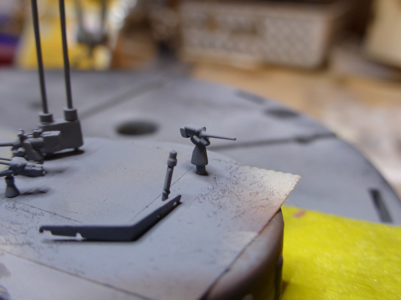 Those little structures aft - one was eaten by the carpet monster, so I had to scratch built one from railing.