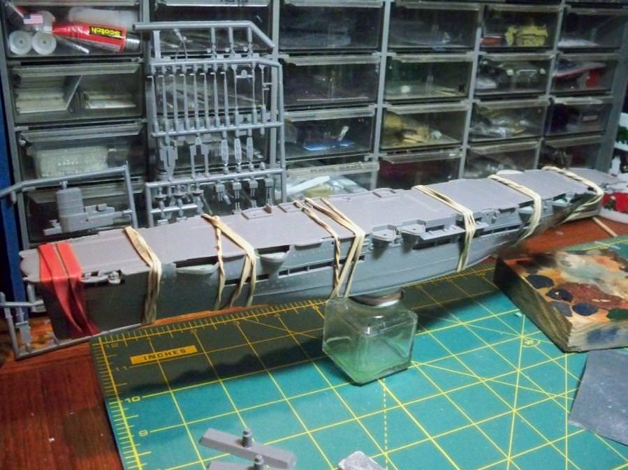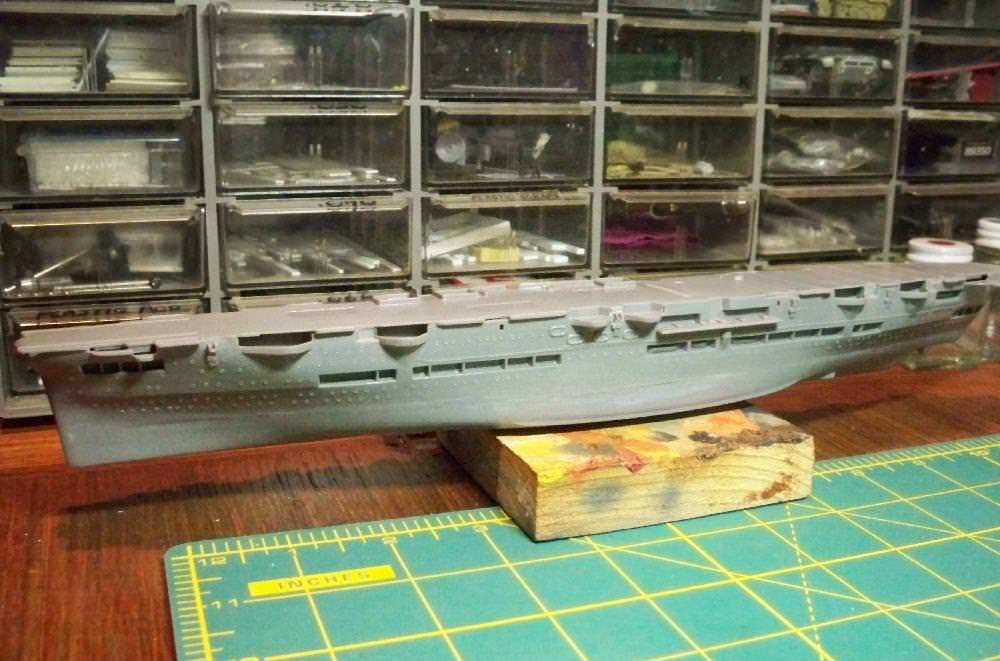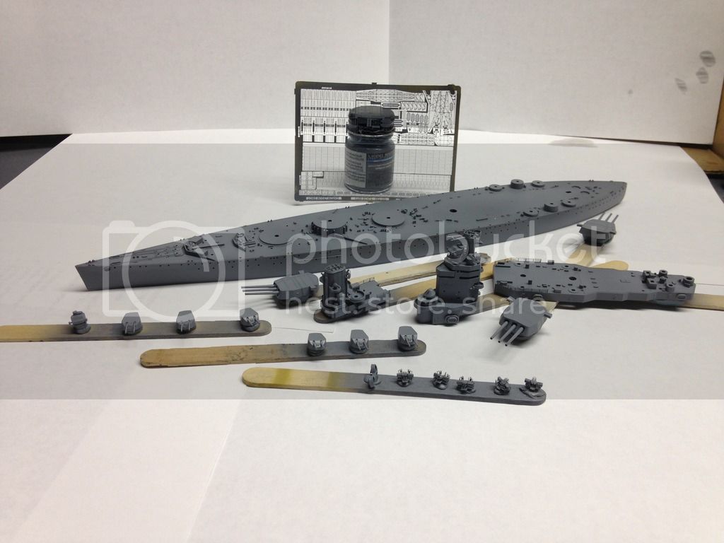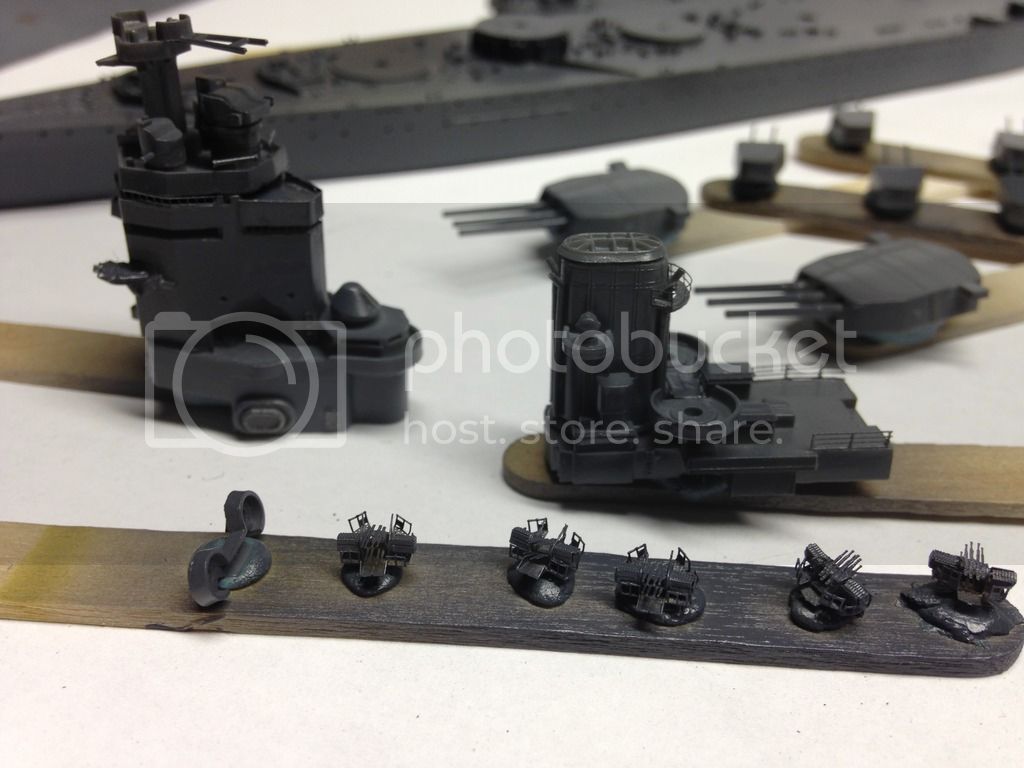 Painting Problem: I went to my local shop, and bought WWII British Naval colors 507-A (Prewar Dark Gray) and 507-C (Prewar Light Gray") only to find out that I actually needed the one do not carry "507-B Neutral Gray". Seriously??? So, instead of spending $8 to get a little bottle shipped to me, I mixed the two together and added some "US Ocean Gray" to make a hopefully passable 507-B.
