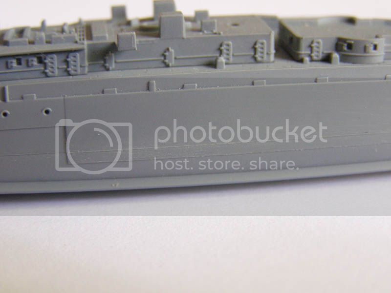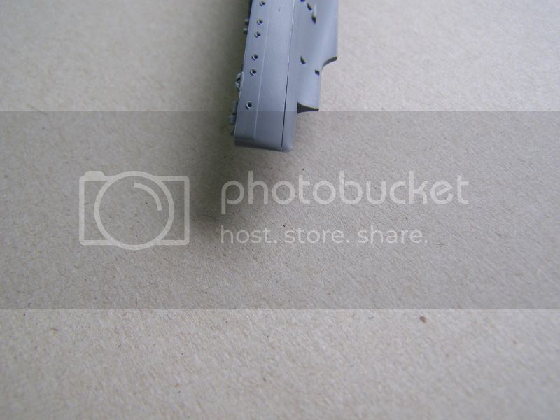 The lower half of the hull (underwater part) is bent a little on ends, probably by ejector pins, which resulted in poorer than expected fit with upper half (which can be seen on the images above). This had a consequence of slight misalignment along the whole length of the seams and the armor plating is the most obvious example of that.