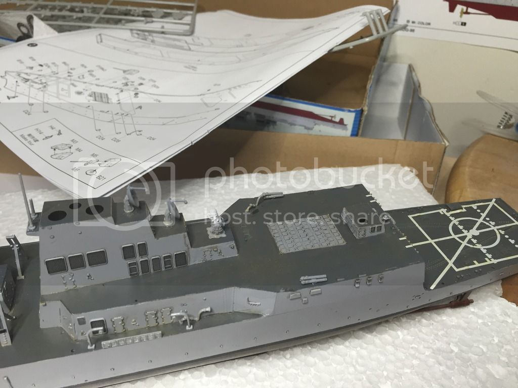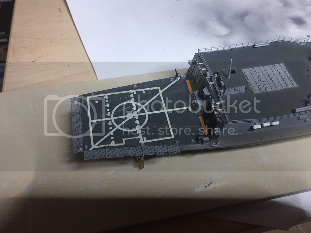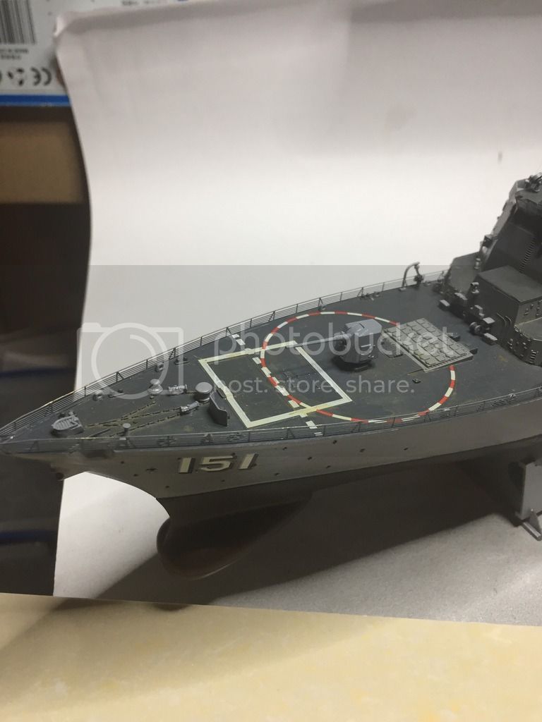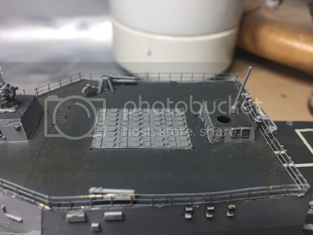 Just need to finish and tidy up the rear nets, add the 25mm chain guns and a very light few streaks down the side. Add the helicopter also. And front and rear flag-staffs