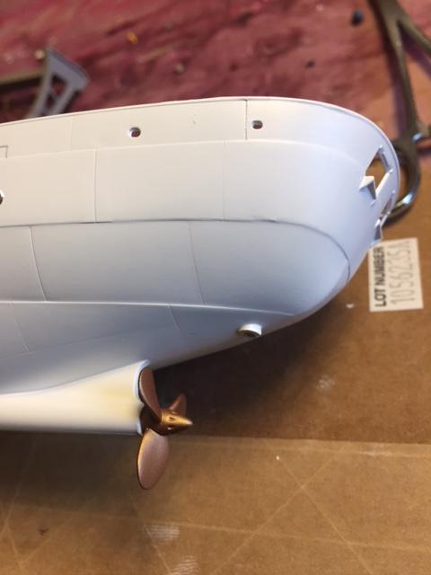 Here are more photos of the build, putting the depth charges together, putting the CSA generators together, doing something to the prop, and painting the decks.