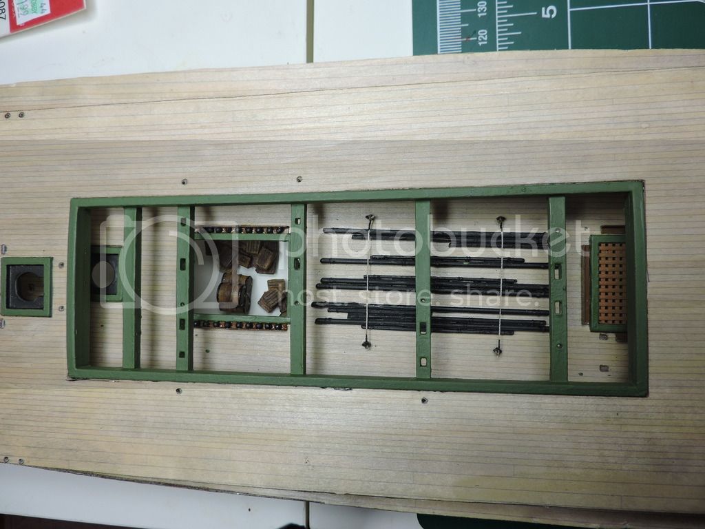 Todd - my 3rd ship was Captain Kidd's Pirate ship and, it was so badly warped, many a time I wanted to throw it at the wall. lol I finished it up and it was a good lesson in painting detail and working on my vocabulary. I'm currently working on Revell's 1:96 USS Constition and taking my time to get this sailing ship right. Purchased the AOS and Rigging Period Ships books to use as a reference. I'm currently working on gun tackle for the gun deck long guns. Here's a couple of pics of the hull and gun deck (without cannons).