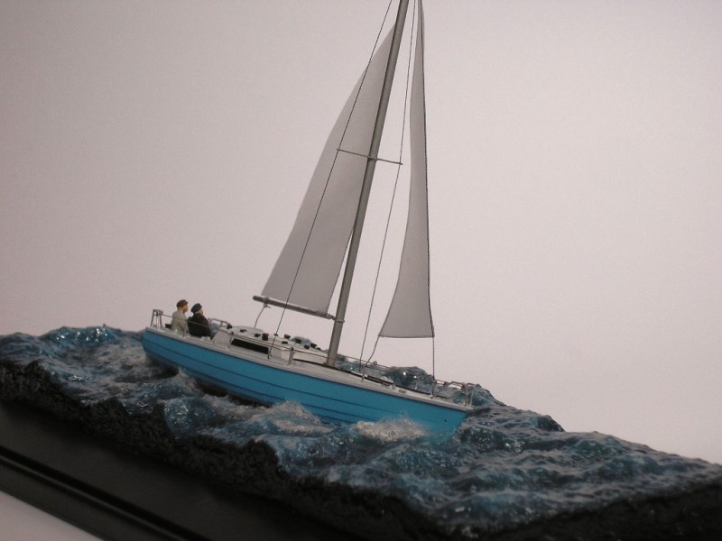Thank you mates for your nice comments. Unfortunately I can’t take any more photos, the model  was a commission work and it is already in the collectors display cabinet! Concerning the sea ,I did not use any “exotic” material. I always have as a base a Styrofoam piece. For the waves    I use air dry clay which I roughen it with an old brush. I like to work with simple acrylics to paint the sea and to give the transparency with acrylic gel. The secret in the gel is making a lot of layers and sometimes to paint between them lighter tones of your basic sea color. For the white water  the combination of cotton with acrylic gloss medium is the better solution. If the sea is calm sometimes I use transparent resin for the final layer.