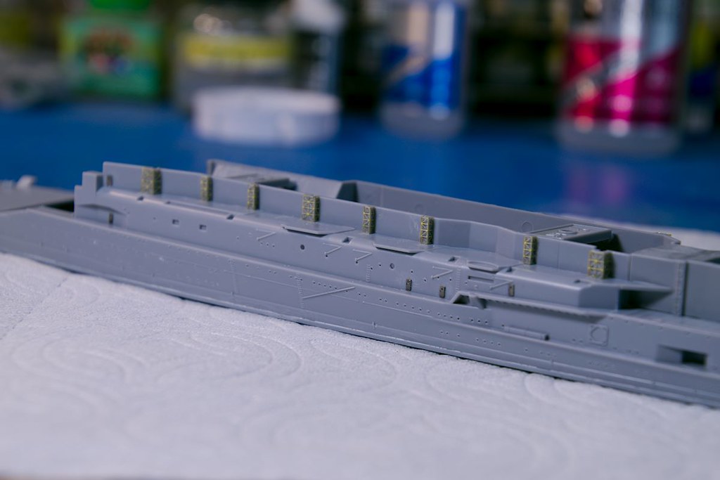 Trying my hand at dot filters to give a little variation to the monochromatic hull gray. The streaks do not look as stark in natural light as they do here.