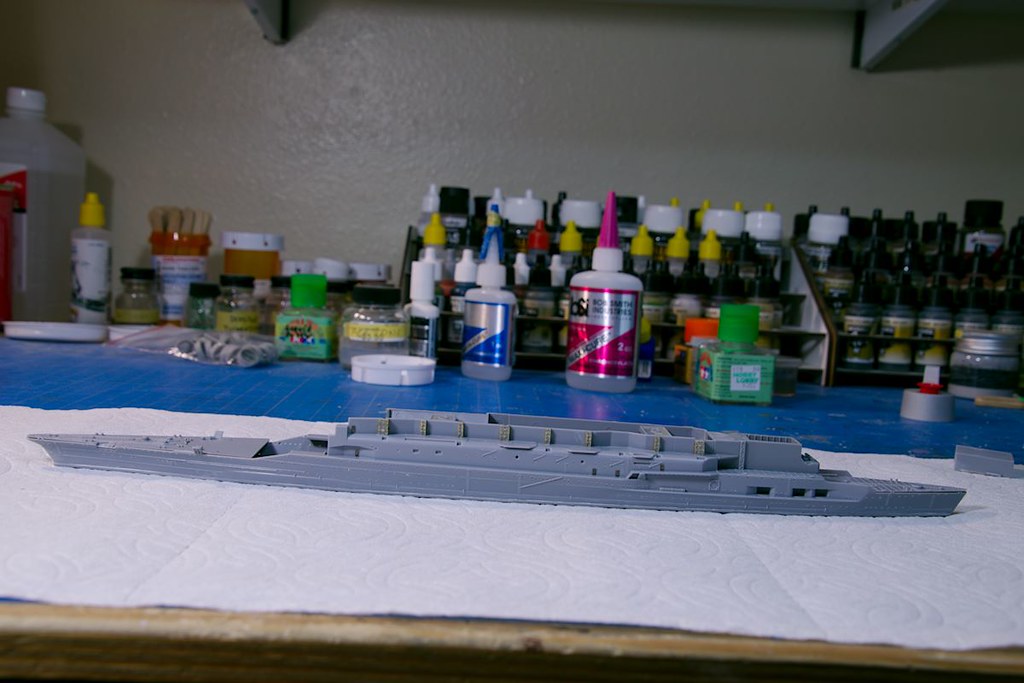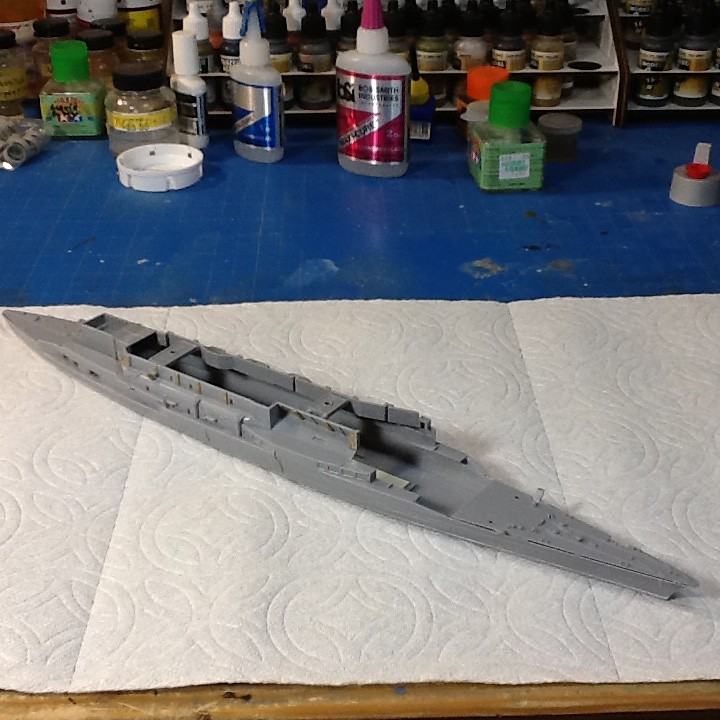 So far I have the hull assembled, drilled out the portholes, started adding PE and dry fitting the decks.