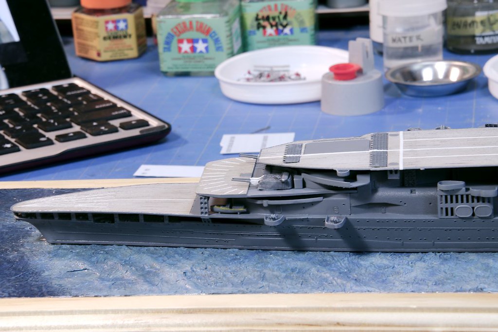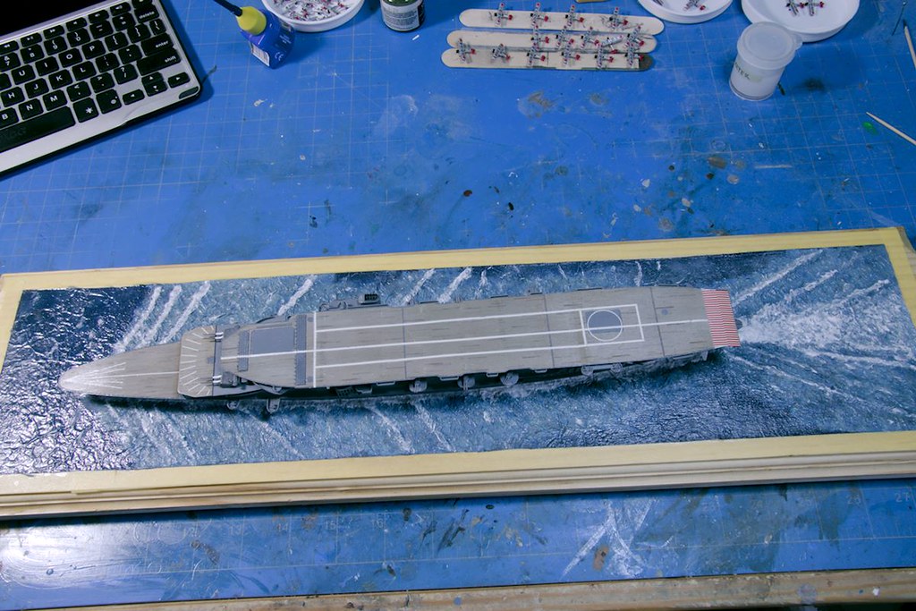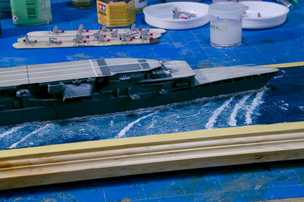 Wow, I can't believe it been almost a month since my last post on this build. I have been busy as bee getting the ship ready, planes painted and creating the water base, my first one. Anyway enough of that here are a few progress photos.