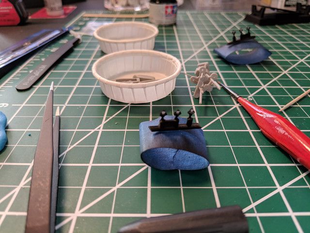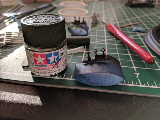 Painted the superstructure by hand. Under magnification, I hate it. But it looks ok by itself.
