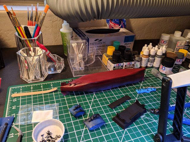 Here is my proudest part!! 1 part Hull Red and 3 parts Red created this color. I applied two coats and absolutely love it. I feel like it more appropriate for this ship. Mostly in my own head tho.