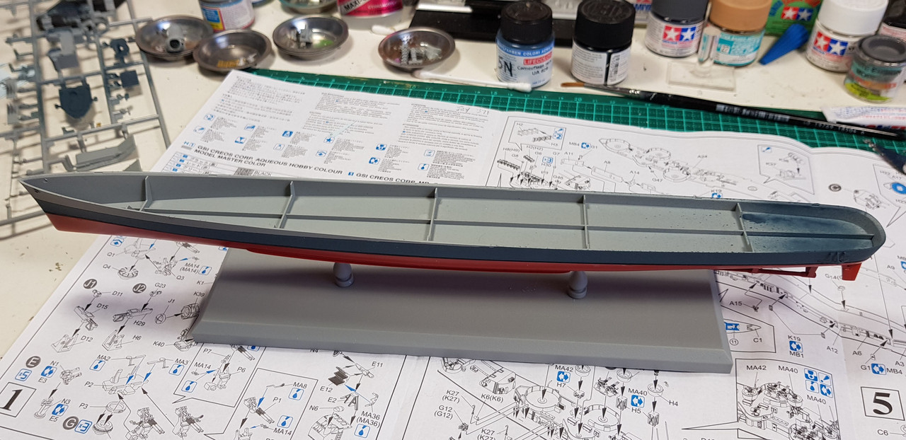 Was very busy with 1/1 vehicles on the weekend but found time to finish the painting of the hull and glue them together..